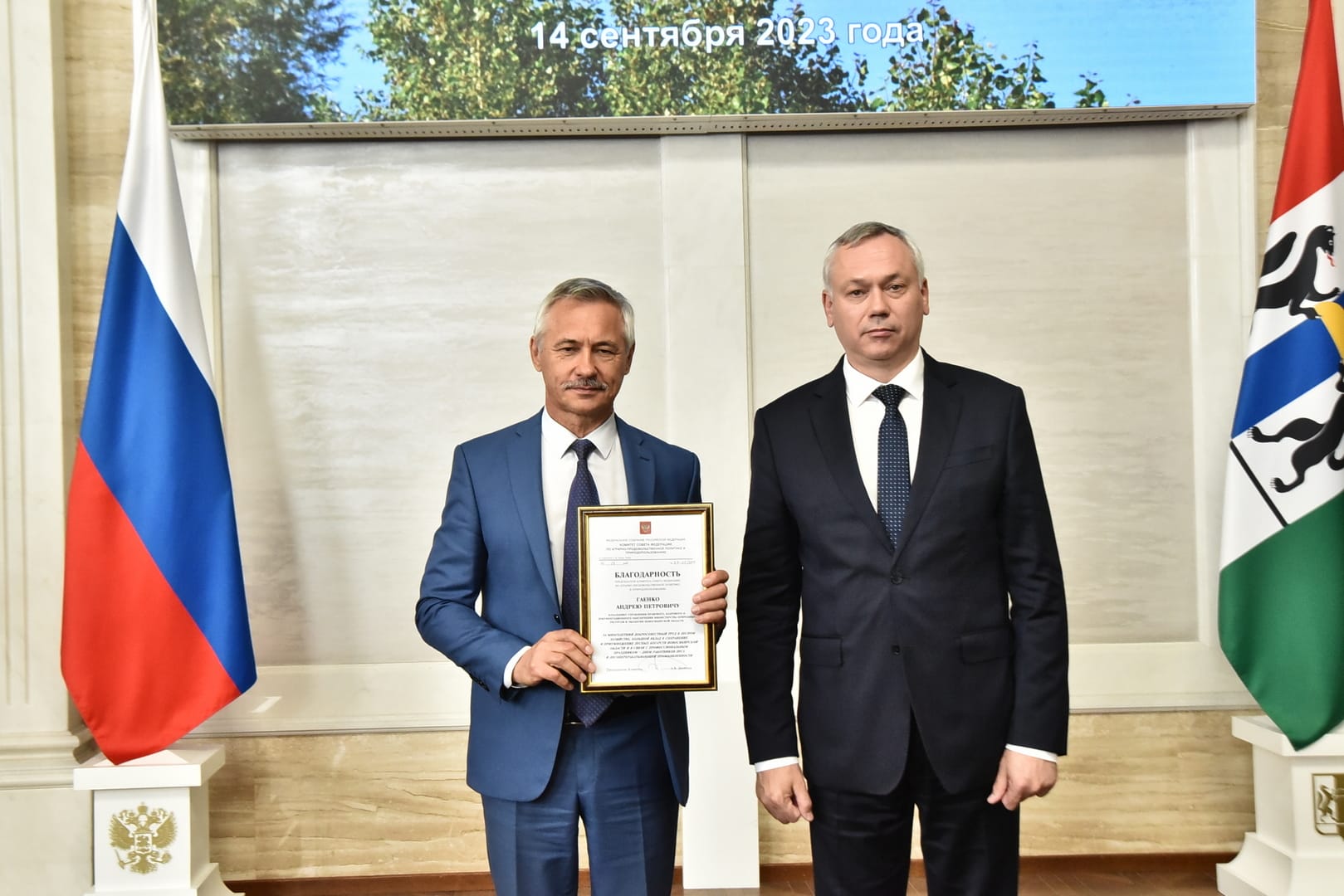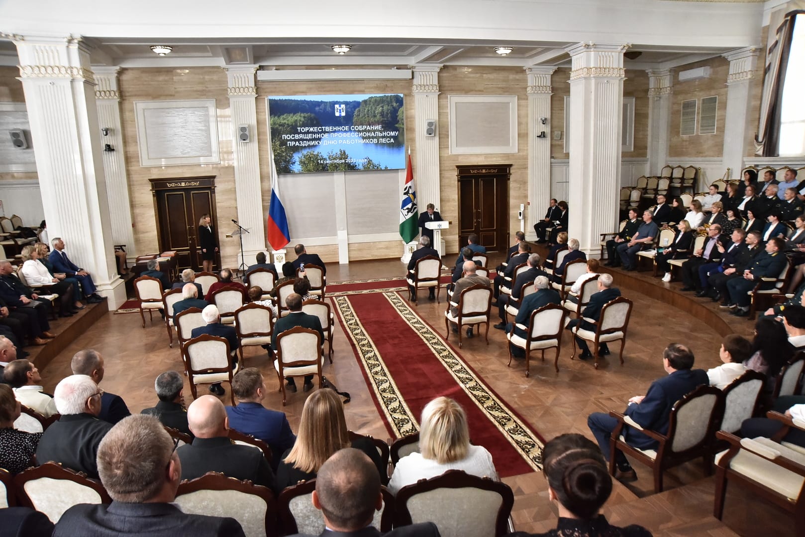 Губернатор Андрей Травников принял участие в торжественном собрании, посвященном Дню работников леса. Мероприятие состоялось в Правительстве Новосибирской области 14 сентября.