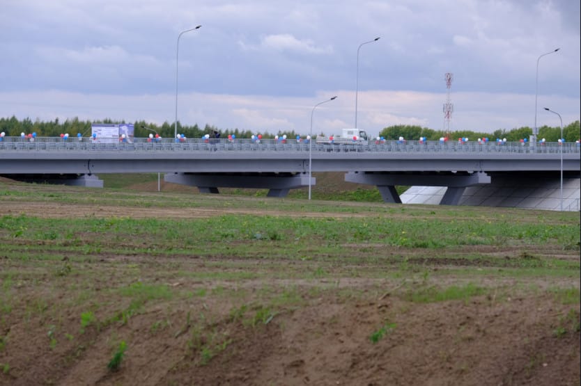 Работы на путепроводе полностью выполнены: уложено покрытие проезжей части из асфальтобетона, нанесена разметка, выполнено инженерное обустройство, установлена линия искусственного освещения. Также уложено асфальтобетонное покрытие на подходах к путепроводу и съездах транспортной развязки.
