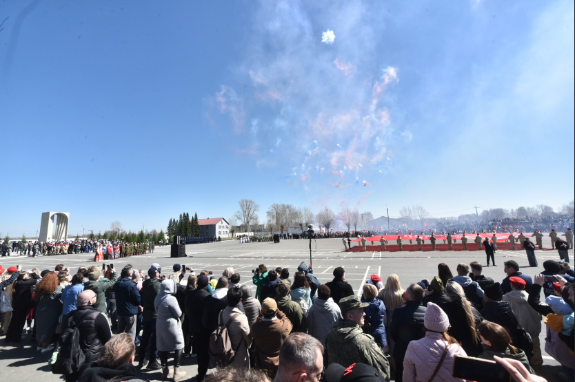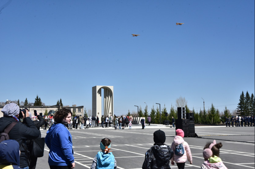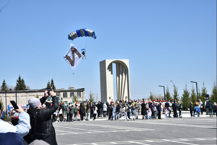 В рамках митинга состоялась церемония возложения цветов и венков к Мемориалу, а также парад с показательными выступлениями пилотов, курсантов Новосибирского ордена Жукова военного института имени генерала армии И. К. Яковлева войск Национальной гвардии Российской Федерации, военно-спортивными и вокально-хореографическими номерами, торжественным разворотом масштабной копии Знамени Победы и праздничным салютом.