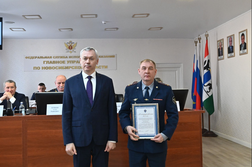 Отличившимся сотрудникам ГУФСИН Андрей Травников вручил Благодарственные письма Губернатора Новосибирской области.