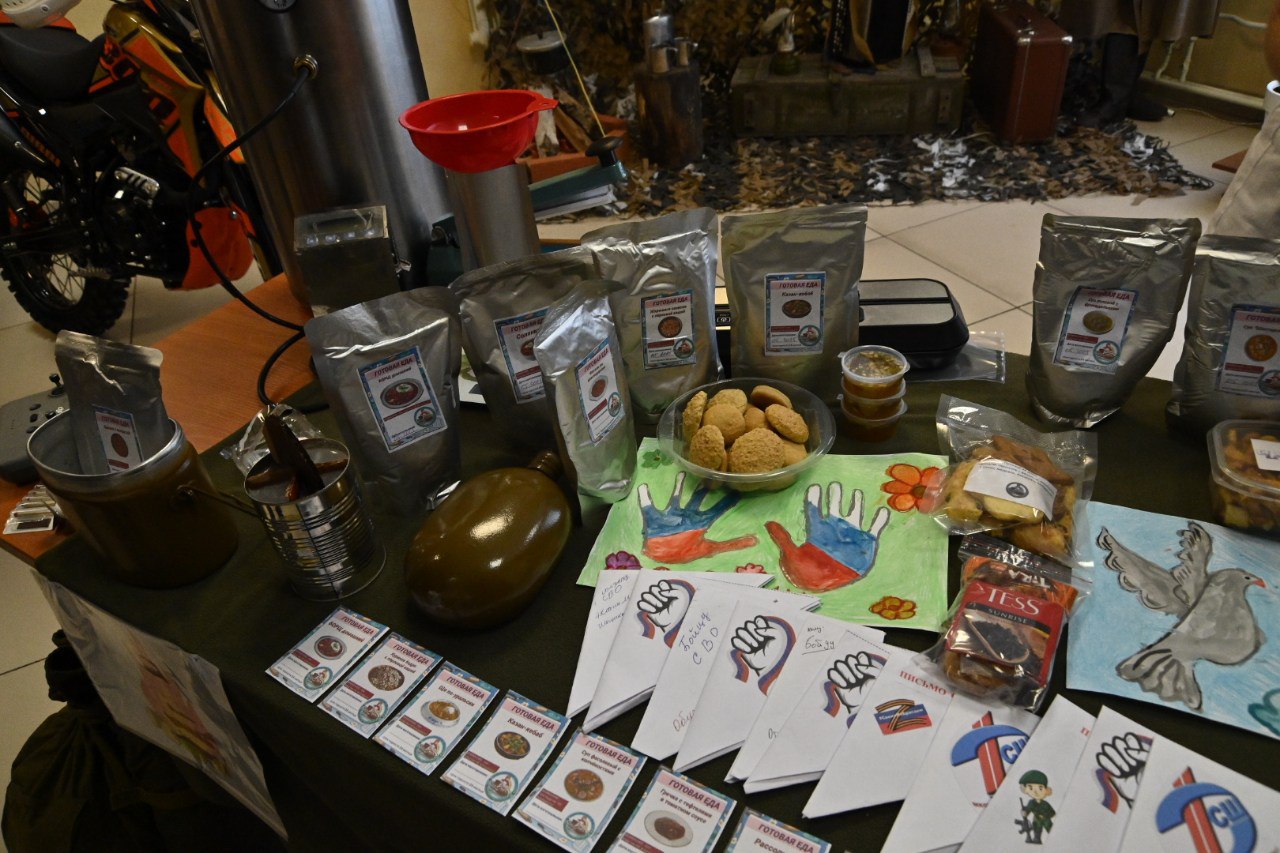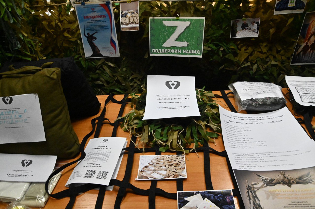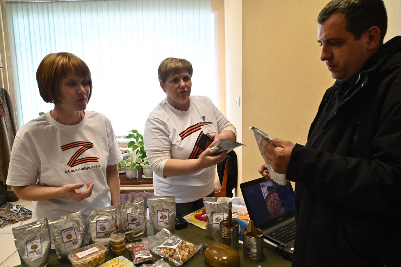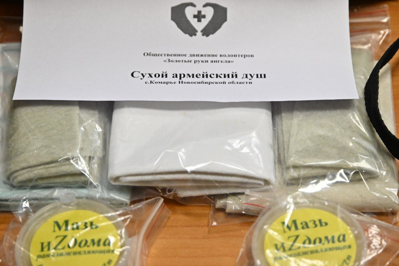 Глава региона ознакомился с продукцией, которую изготавливают волонтёрские организации в Доволенском районе: «Горячие сердца», «Всегда Вместе», «Своих не бросаем», «Золотые руки ангела», «Доволенские кухарочки». Они плетут маскировочные сети, делают окопные свечи, домашнюю еду в реторт-пакетах, которая может храниться без холодильника, браслеты выживания, блиндажные и госпитальные подушки, носилки, сухой душ, газовые баллоны и многое другое.