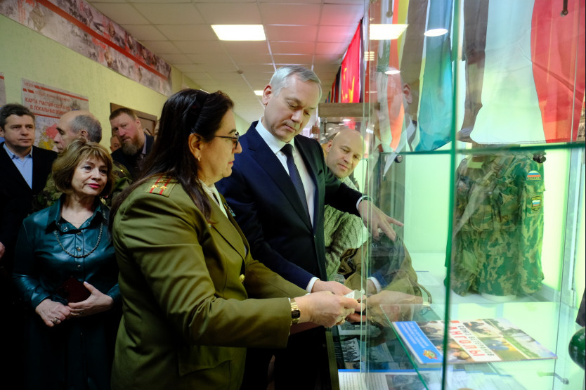 В этот же день глава региона ознакомился с экспозицией военно-исторического музея локальных войн «Солдат войны не выбирает» Сибирского геофизического колледжа. О создании музея, его развитии главе региона рассказал директор СГФК Сергей Лысенко. Также участие в ознакомлении с экспозицией приняла военно-морской и военно-воздушный атташе Республики Куба в Российской Федерации, полковник Моника Милиан Гомес.