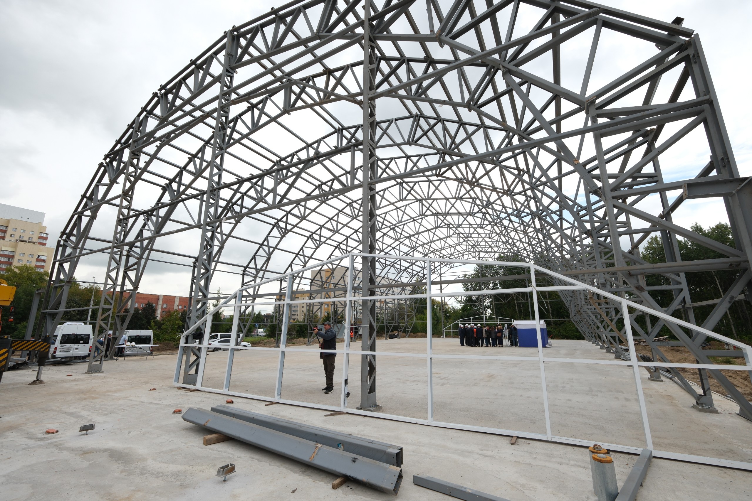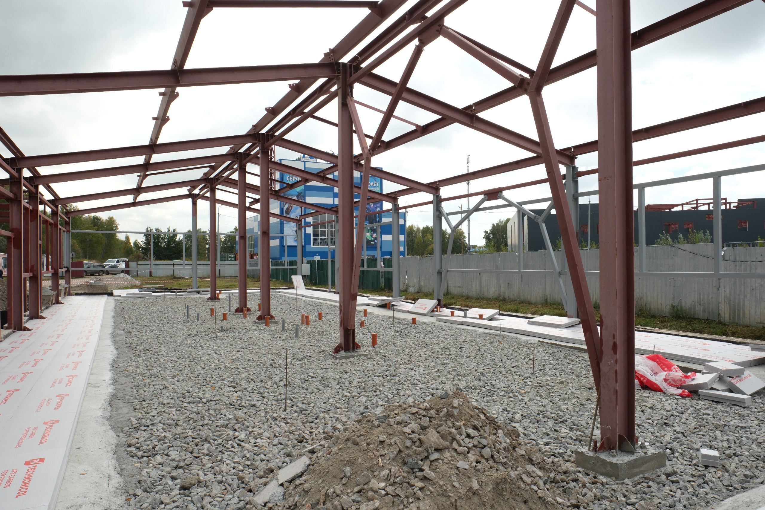 Строительство спортивной площадки осуществляется с 2024 года. На текущий момент выполнены работы по благоустройству земельного участка – планировка территории и бетонное основание для монтажа модуля. Также выполнены внешние и внутриплощадочные инженерные сети: водоснабжения, водоотведения, теплоснабжения, электроснабжения и ливневой канализации.