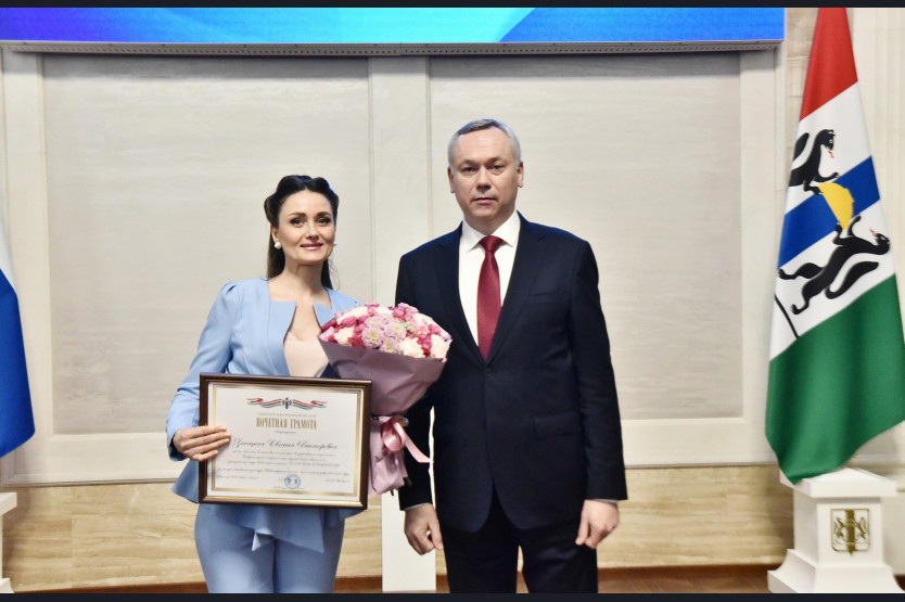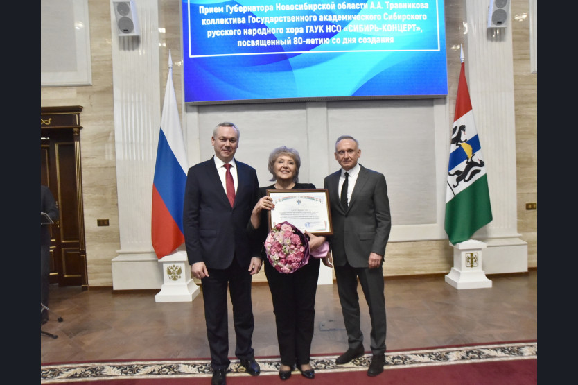 Губернатор Андрей Травников и Первый заместитель Председателя Законодательного Собрания региона Андрей Панфёров вручили коллективу Сибирского русского народного хора Почетную грамоту Новосибирской области. Награду получила директор ГАУК НСО «Сибирь-Концерт», заслуженный работник культуры Российской Федерации Екатерина Ковалева.