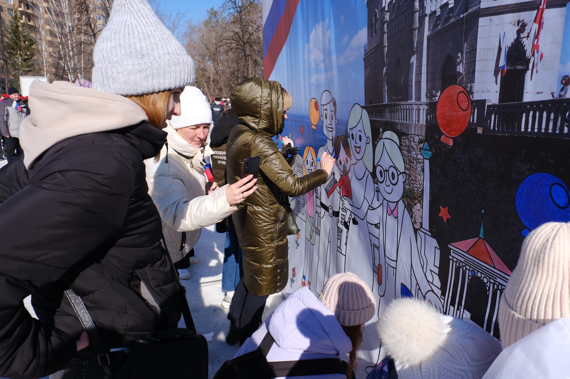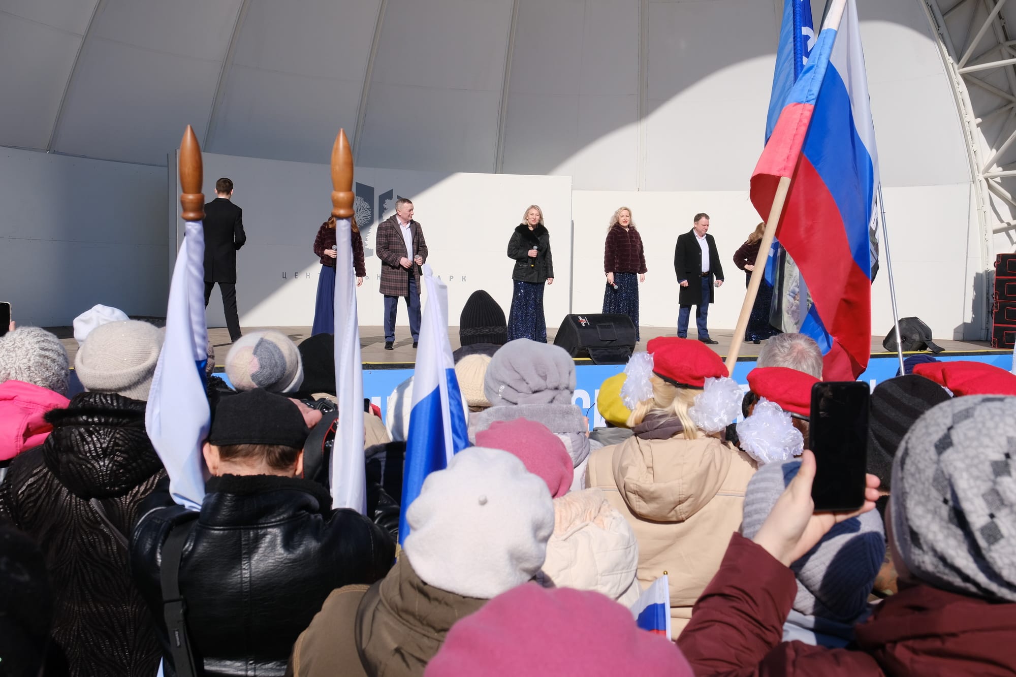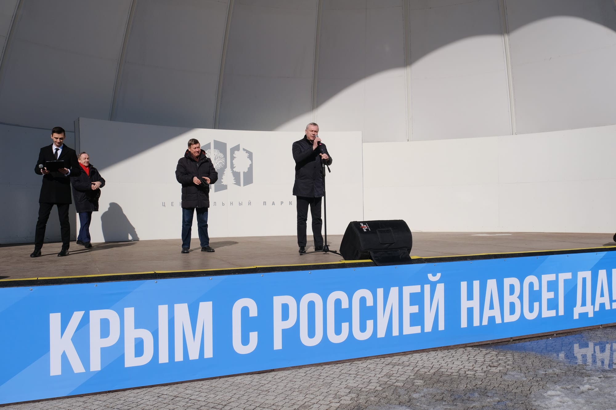 Также участников мероприятия приветствовали мэр Новосибирска Анатолий Локоть, заместитель председателя Законодательного собрания Новосибирской области Владимир Карпов. На центральной площадке парка состоялась концертная программа, посвящённая Дню воссоединения Крыма с Россией.
