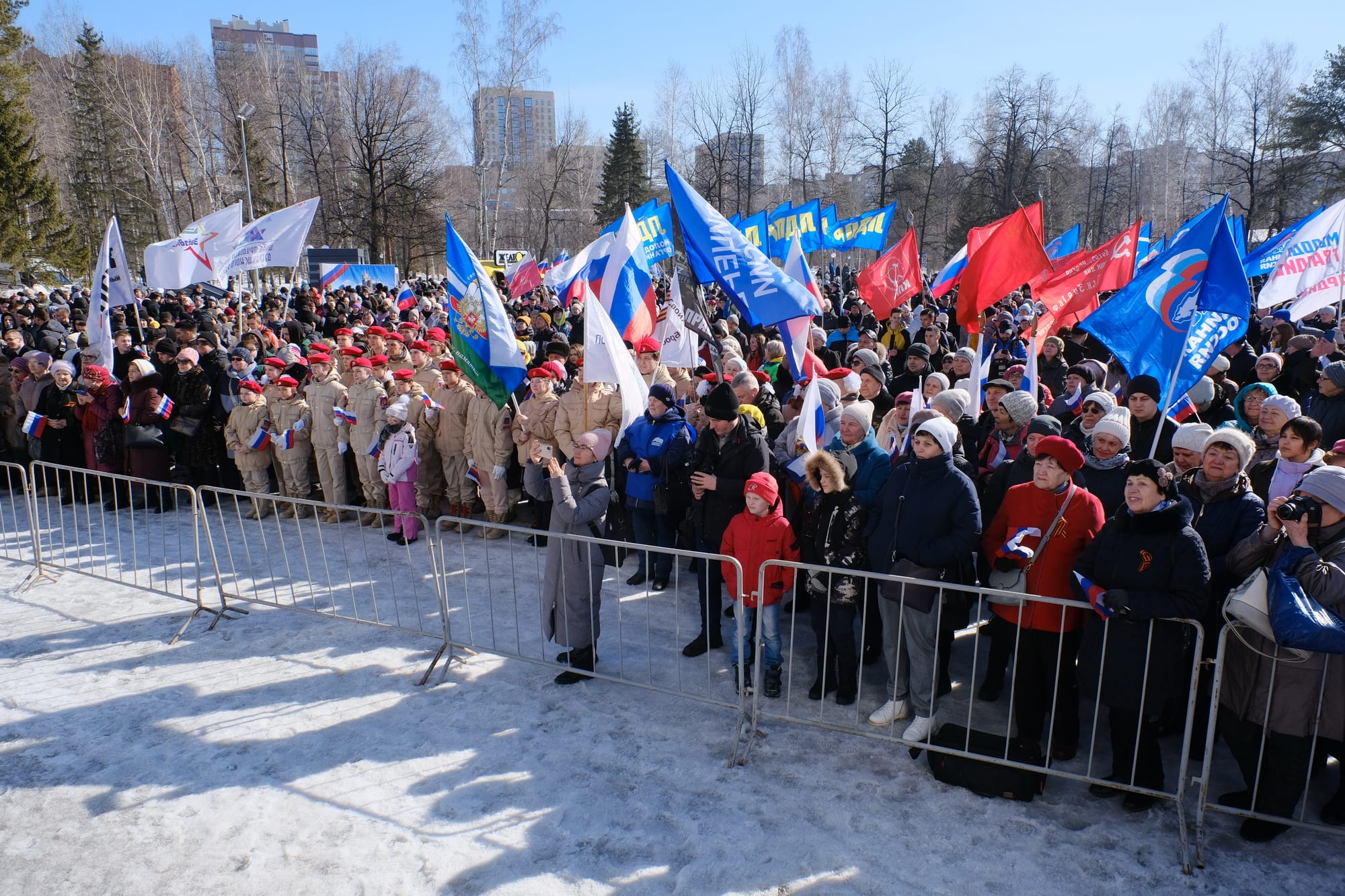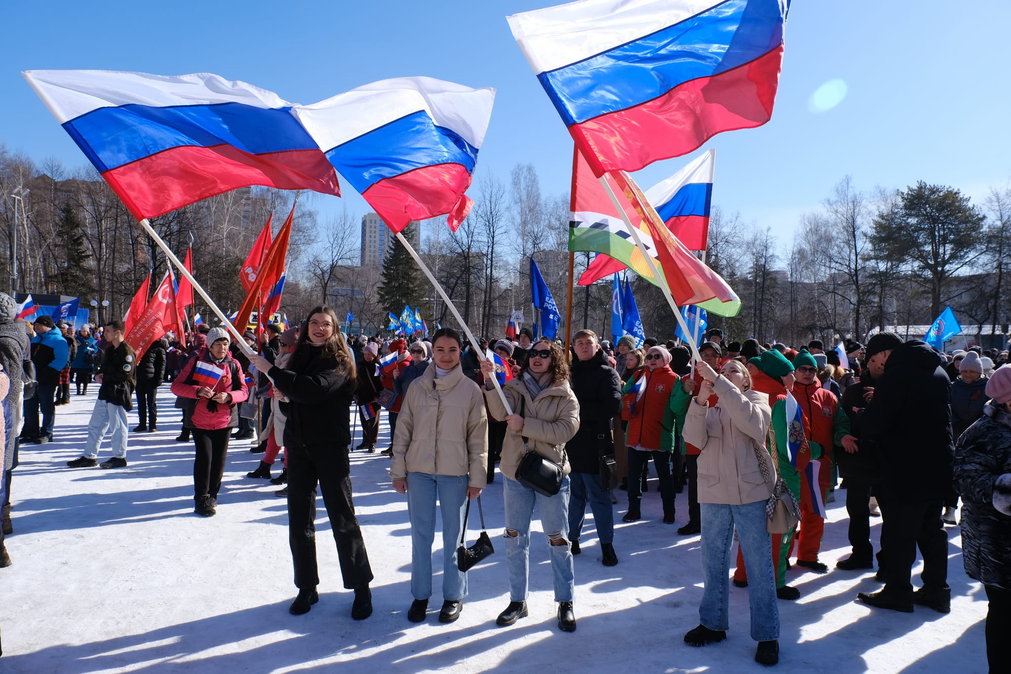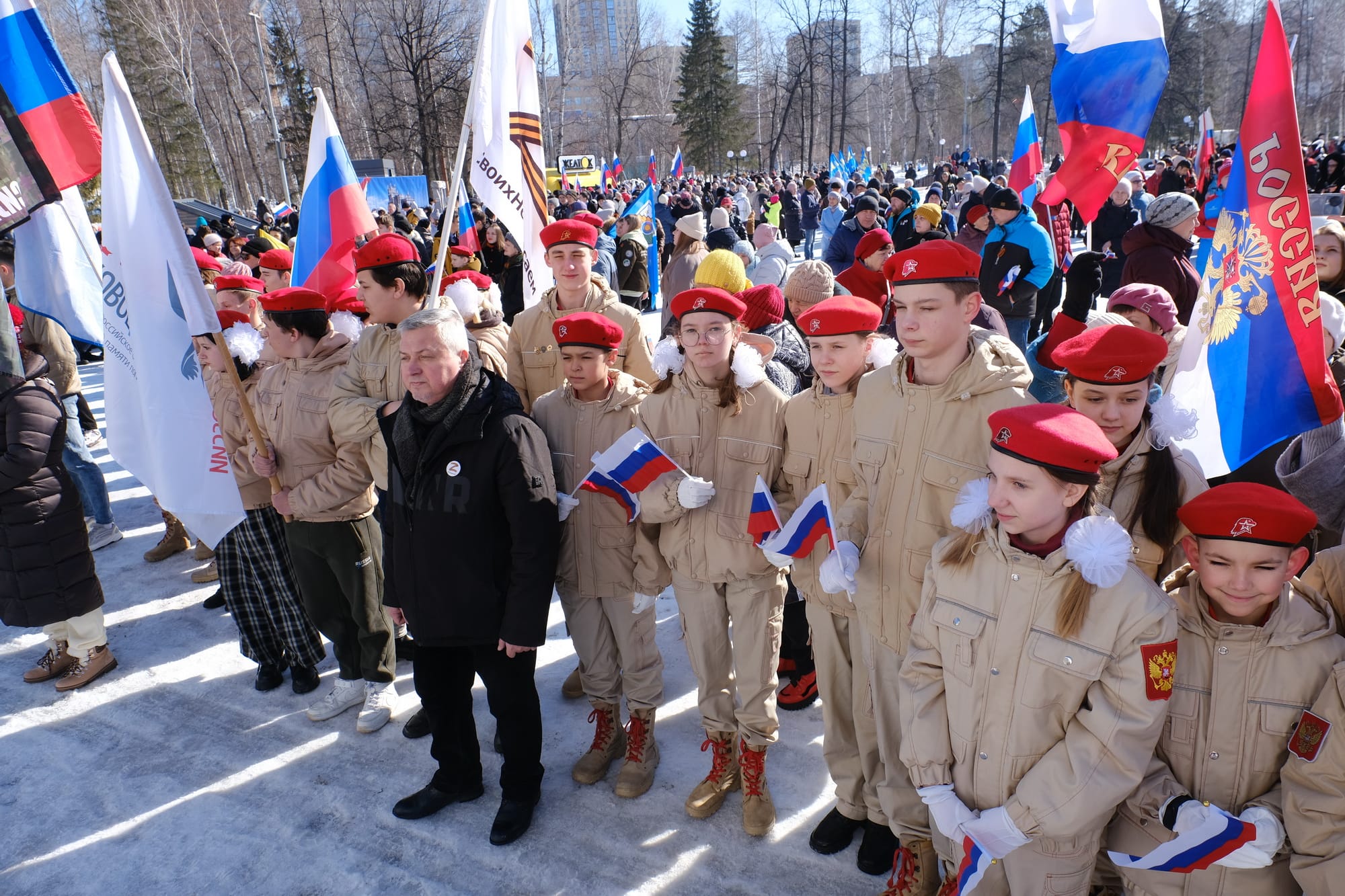 Также участников мероприятия приветствовали мэр Новосибирска Анатолий Локоть, заместитель председателя Законодательного собрания Новосибирской области Владимир Карпов. На центральной площадке парка состоялась концертная программа, посвящённая Дню воссоединения Крыма с Россией.
