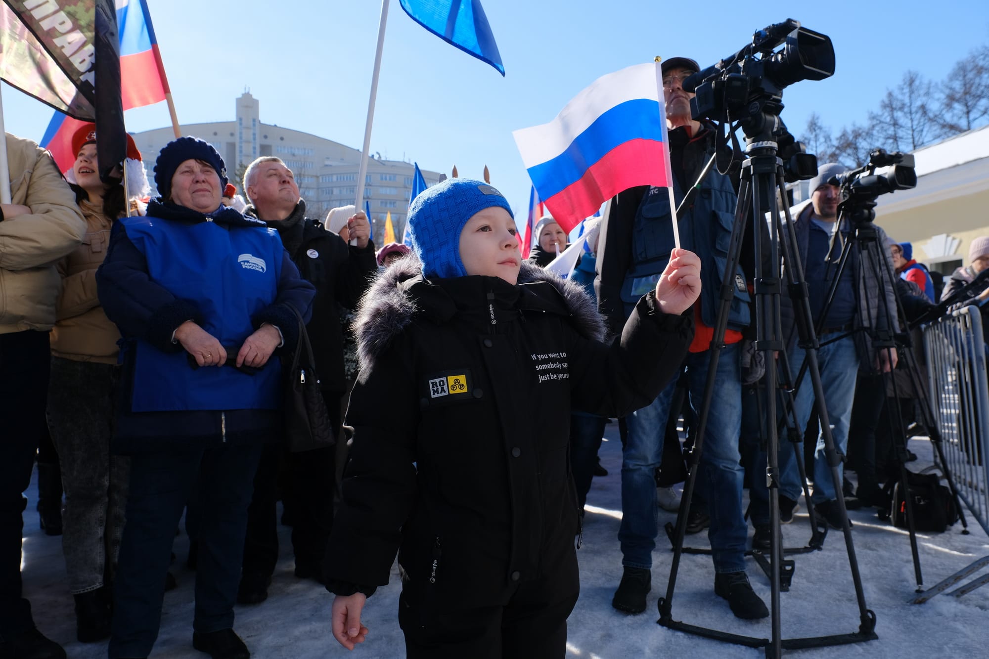 Кто-то, как жители Донбасса, боролись, и продолжают бороться до сих пор. Жители Крыма мощно встали, объединившись, в один строй, оперлись на помощь и поддержку России. И вернулись на Родину. Сегодня мы празднуем этот великий и радостный день, это важное историческое событие. Празднуем нашу уверенность в правоте того дела, которое мы продолжаем. Мы продолжаем непростую борьбу – против нас весь так называемый «просвещенный» Запад, который «просвещенно» творит бесчинства, возрождая нацизм и фашизм на территории страны, которая больше всего пострадала от фашизма и нацизма. Но мы в нашей правоте уверены, мы ничего не пожалеем для нашей победы. И победа будет безусловно за нами!