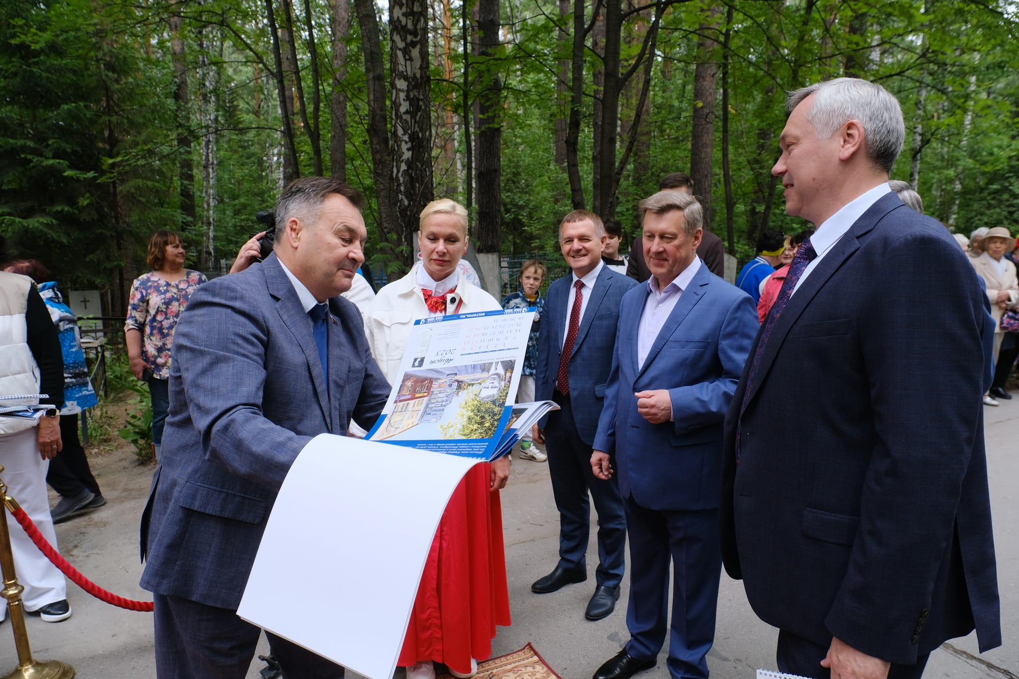 В День города Новосибирска Губернатор Андрей Травников возложил цветы к памятнику Николаю Тихомирову, ознакомился с благоустройством первой очереди парка «Ельцовский», приял участие в открытии памятника Святителю Николаю Чудотворцу.