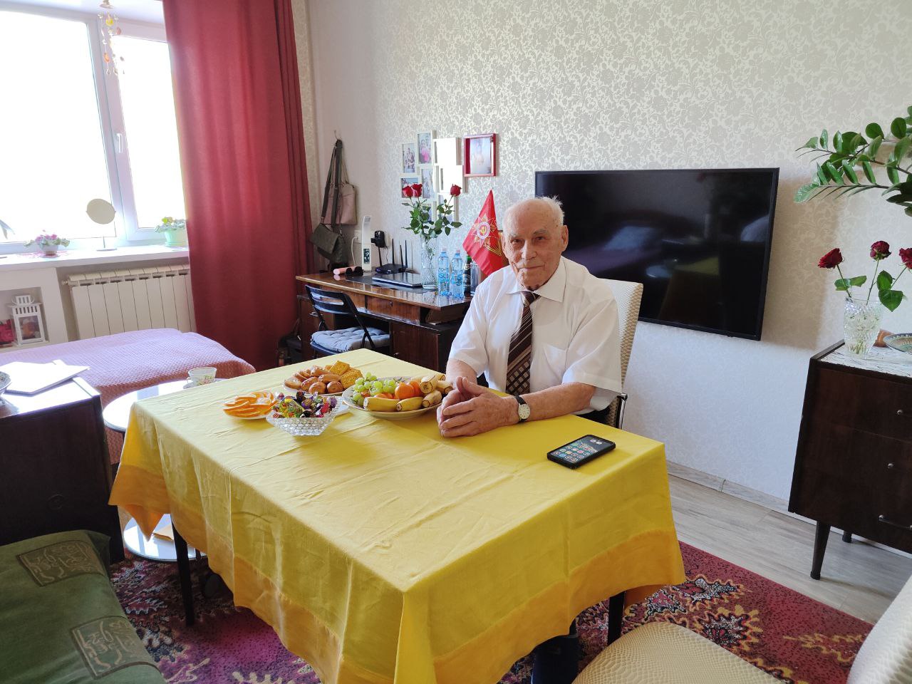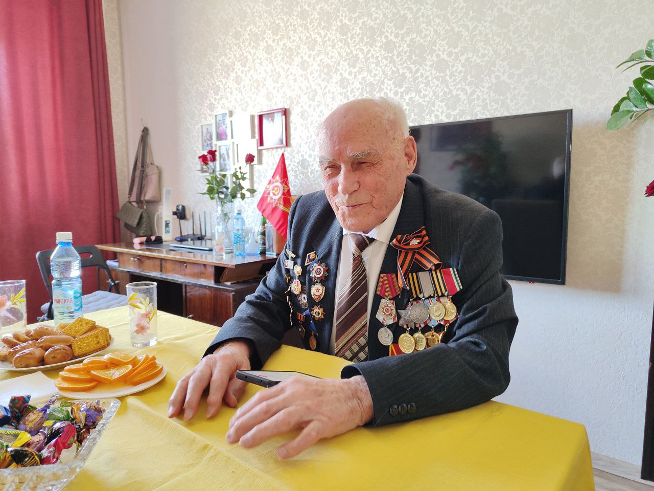 «С большим удовольствием поздравляю вас с наступающим праздником – с Днем Победы! Для всех нас вы – герой! Спасибо вам за всё, сил вам и здоровья!» – поздравил ветерана глава региона.
