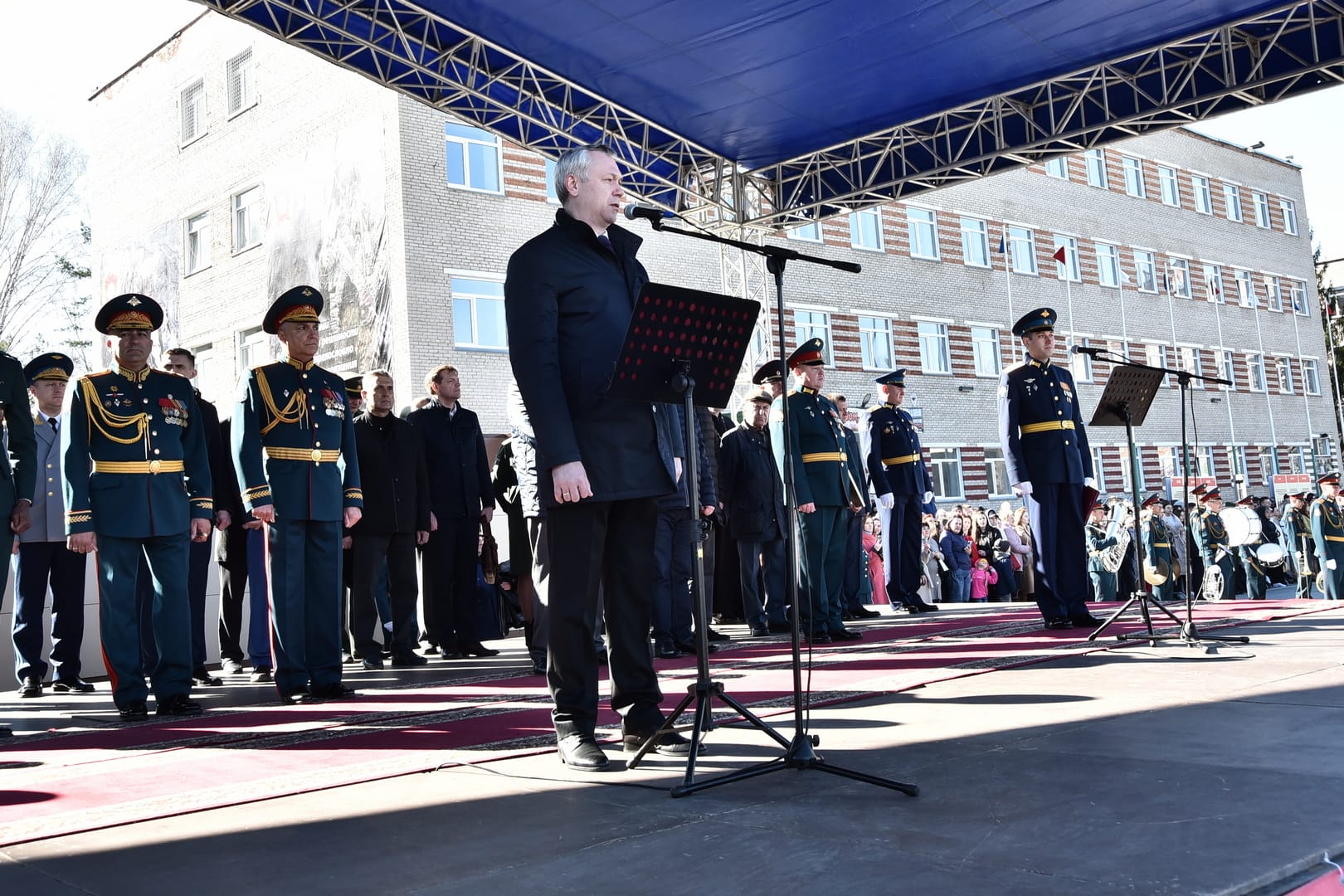 Уверен, вы почувствовали, что на службе за вами будет стоять мощная сила – подчинённые, доверенные вам. Мощная сила и большая ответственность за каждого из них. Желаю, чтобы вы всегда об этом помнили, чтобы все коллективы, которыми вам предстоит командовать, достойно выполняли учебные и боевые задачи, чтобы каждый из вас лично проявлял лучшие качества русского офицера. Уверен, что Родина отметит вас в будущем и новыми званиями, и государственными наградами. А Новосибирская область будет отслеживать ваш путь и гордиться тем, что вы – выпускники нашего Новосибирского высшего военного командного училища. В добрый путь, и храни вас Бог!» – напутствовал новых офицеров Андрей Травников.