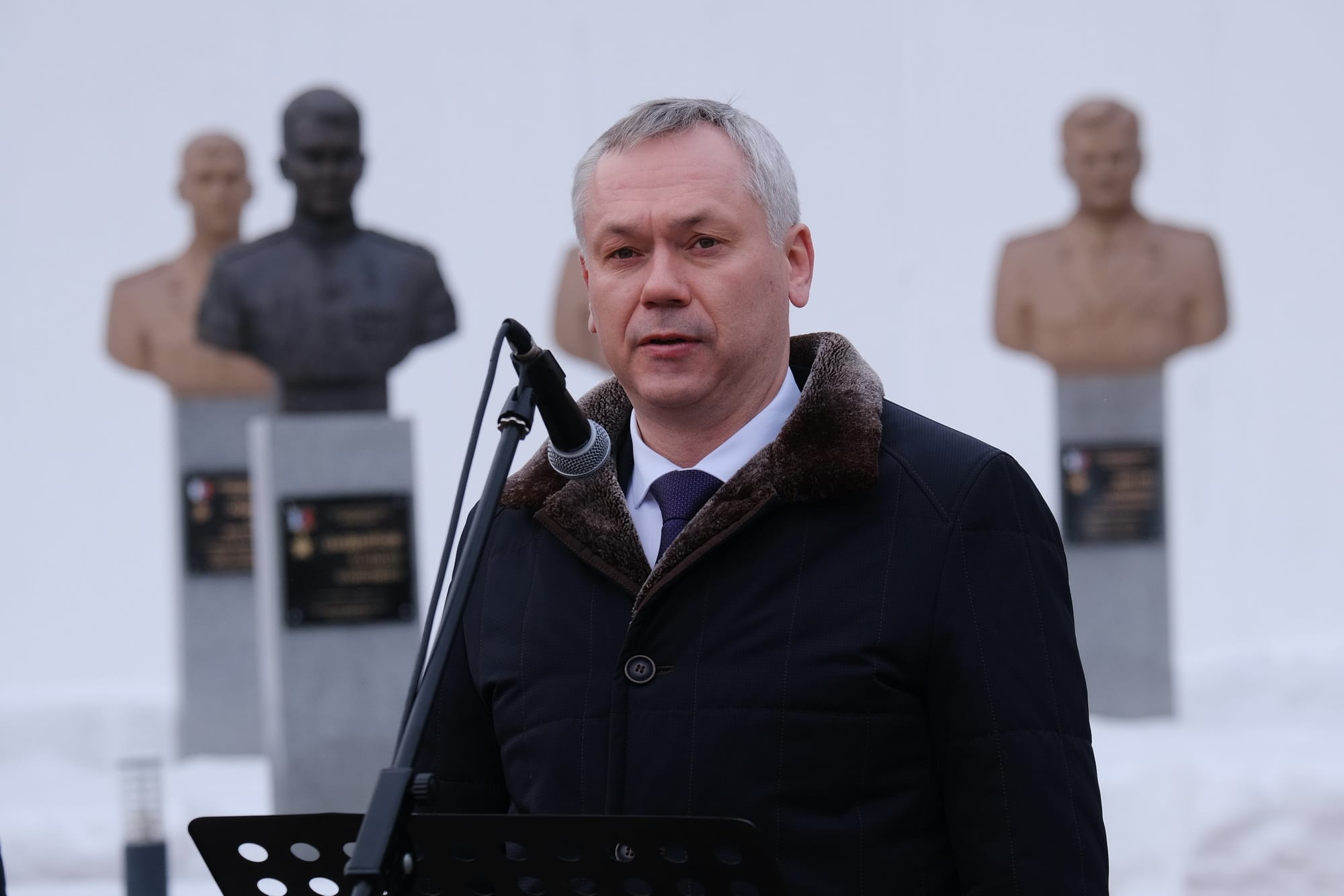 Губернатор Андрей Травников принял участие в церемонии открытия бюстов на Аллее Героев в НВВКУ