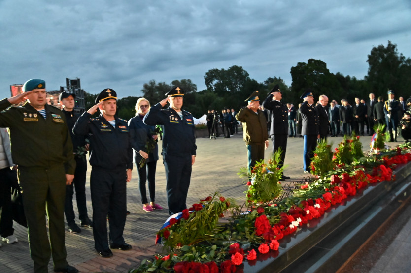 Вместе с тысячами гостей крепости Губернатор наблюдал концерт и митинг-реквием, реконструкцию начала Великой Отечественной войны, а также принял участие в коллективном возложении корзин цветов к Вечному огню.