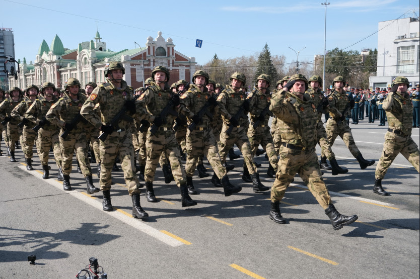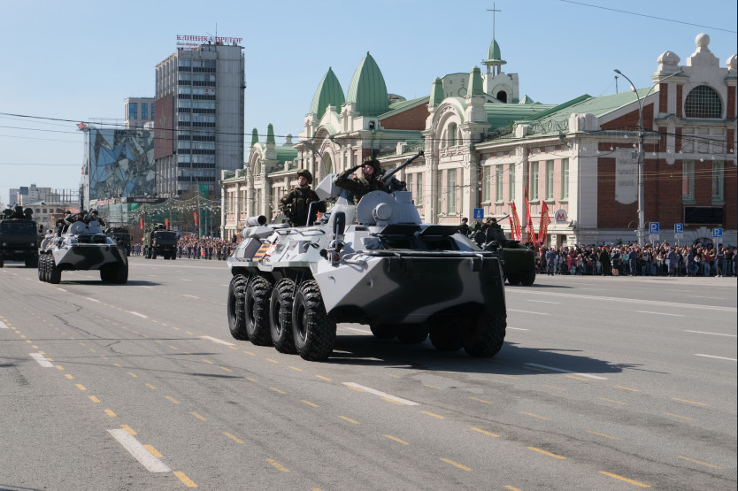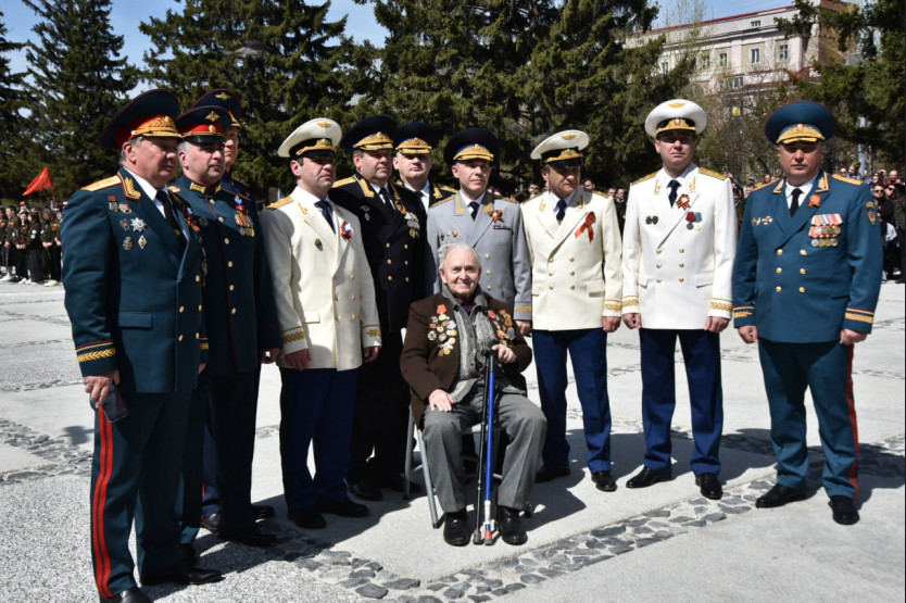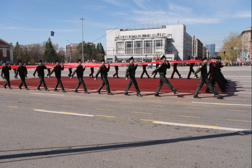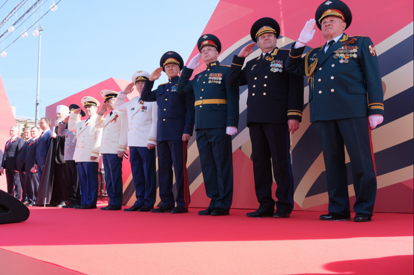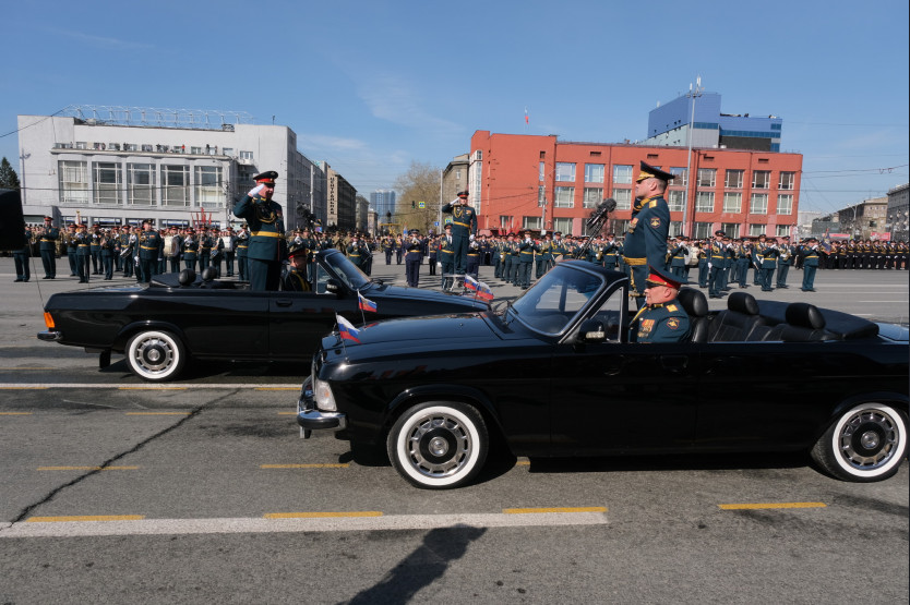 По традиции, Губернатор Андрей Травников возложил цветы к бюсту маршала авиации, трижды Героя Советского Союза Александра Покрышкина, наблюдал за парадом войск Новосибирского гарнизона на площади им. Ленина.