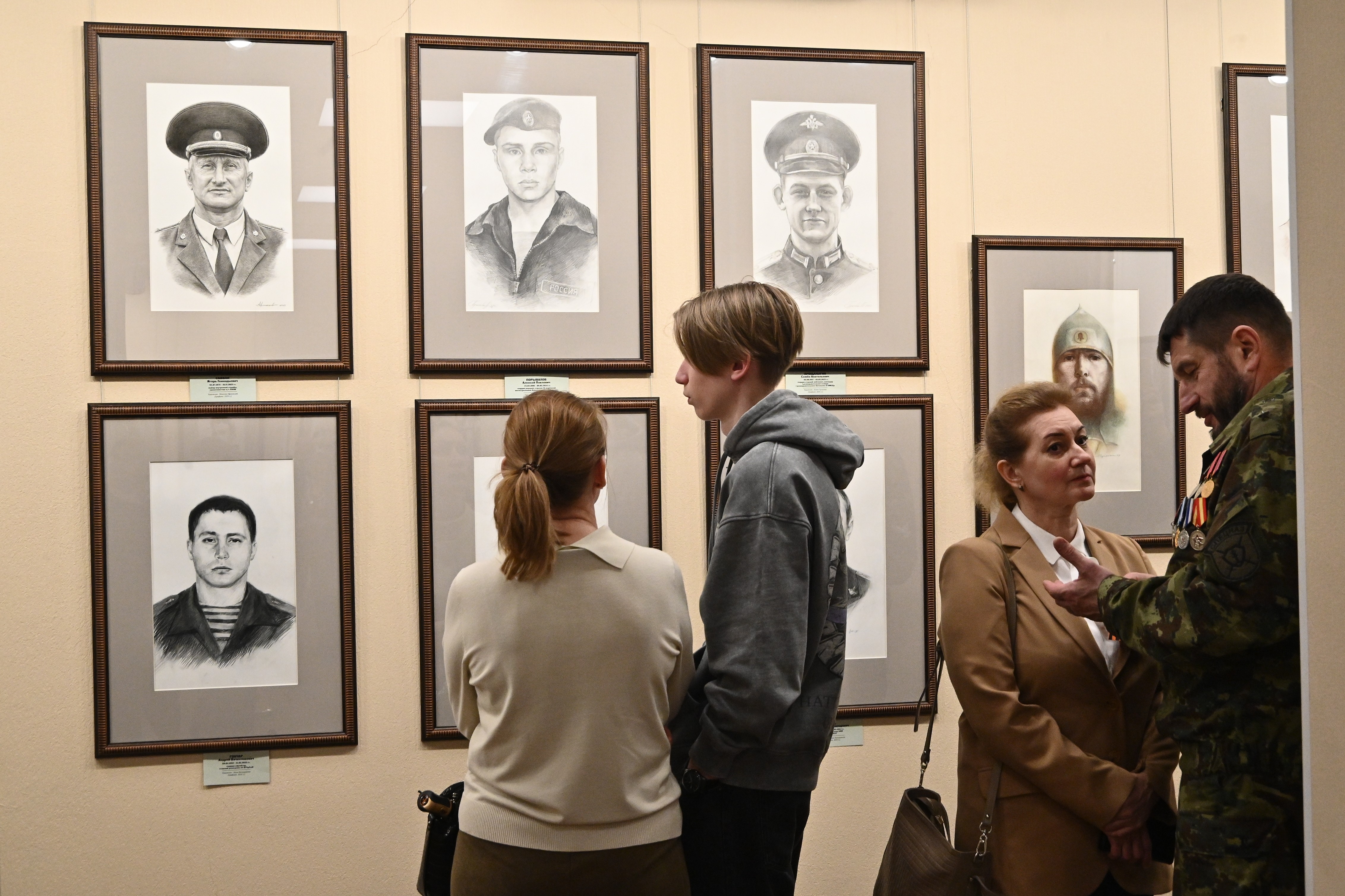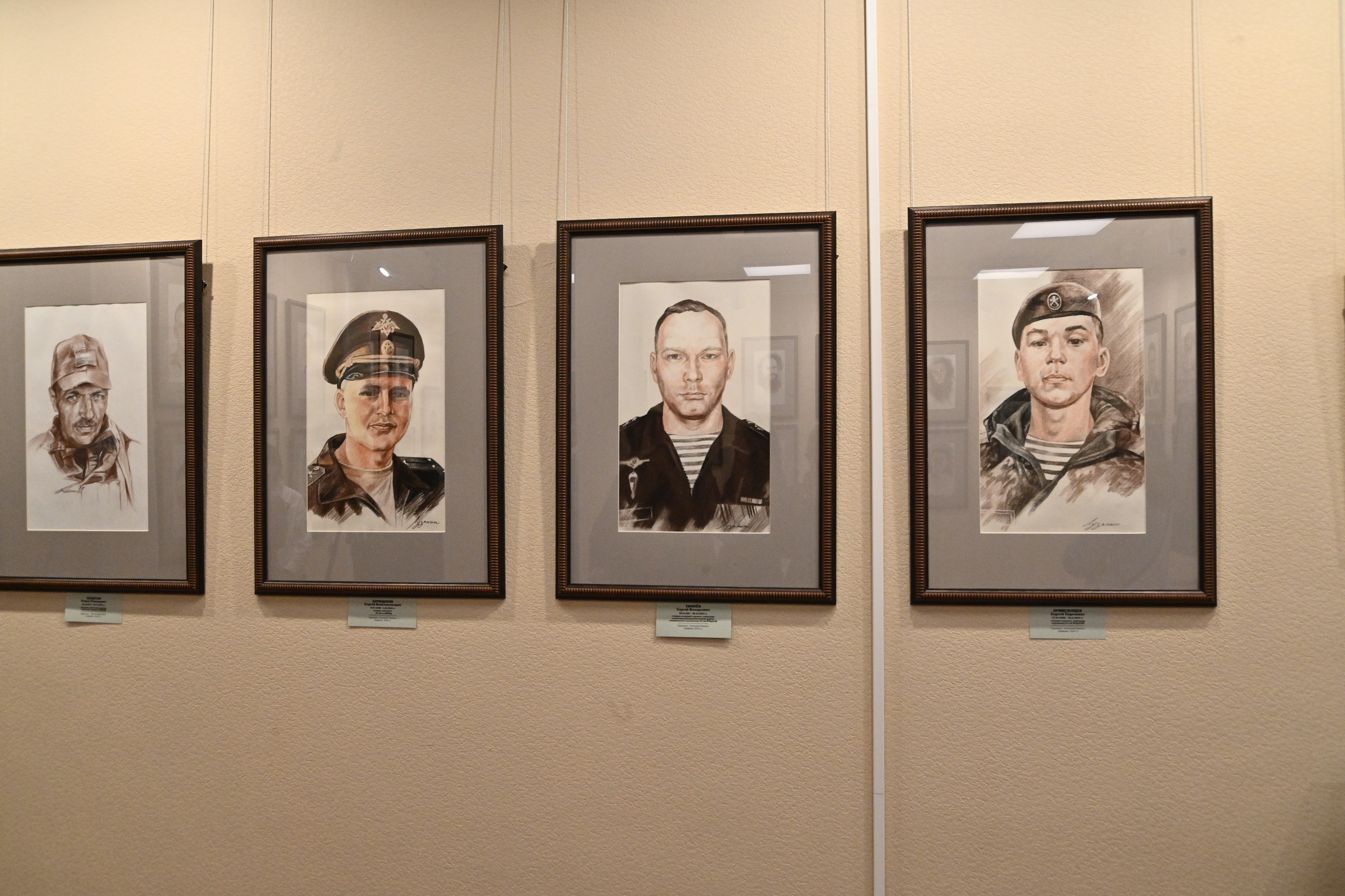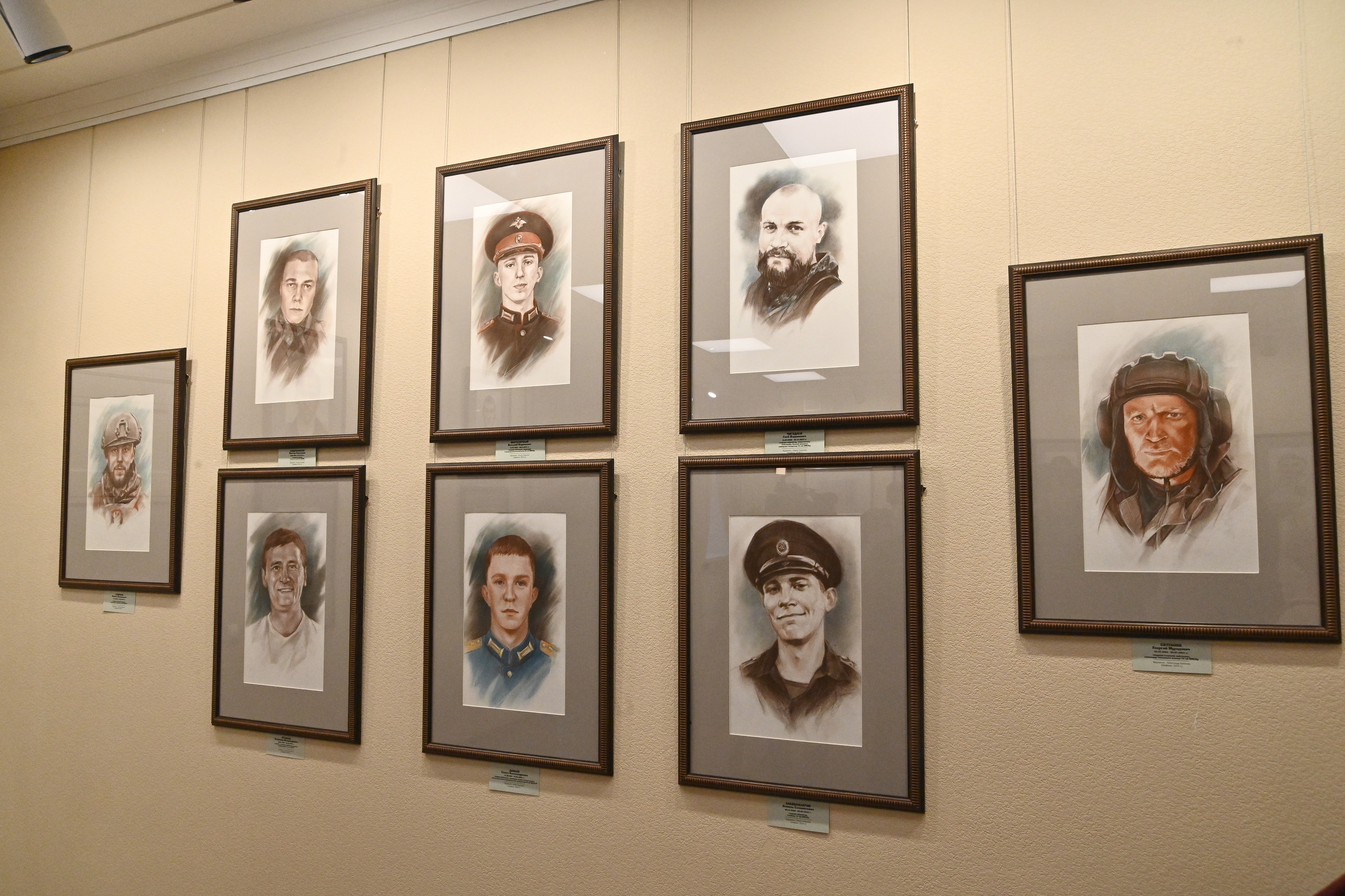 В экспозиции выставки, посвященной 80-летию Победы в Великой Отечественной войне и Году защитника Отечества, представлены портреты героев всех трех этапов проекта, созданные профессиональными художниками Новосибирского регионального отделения «Творческий союз художников».