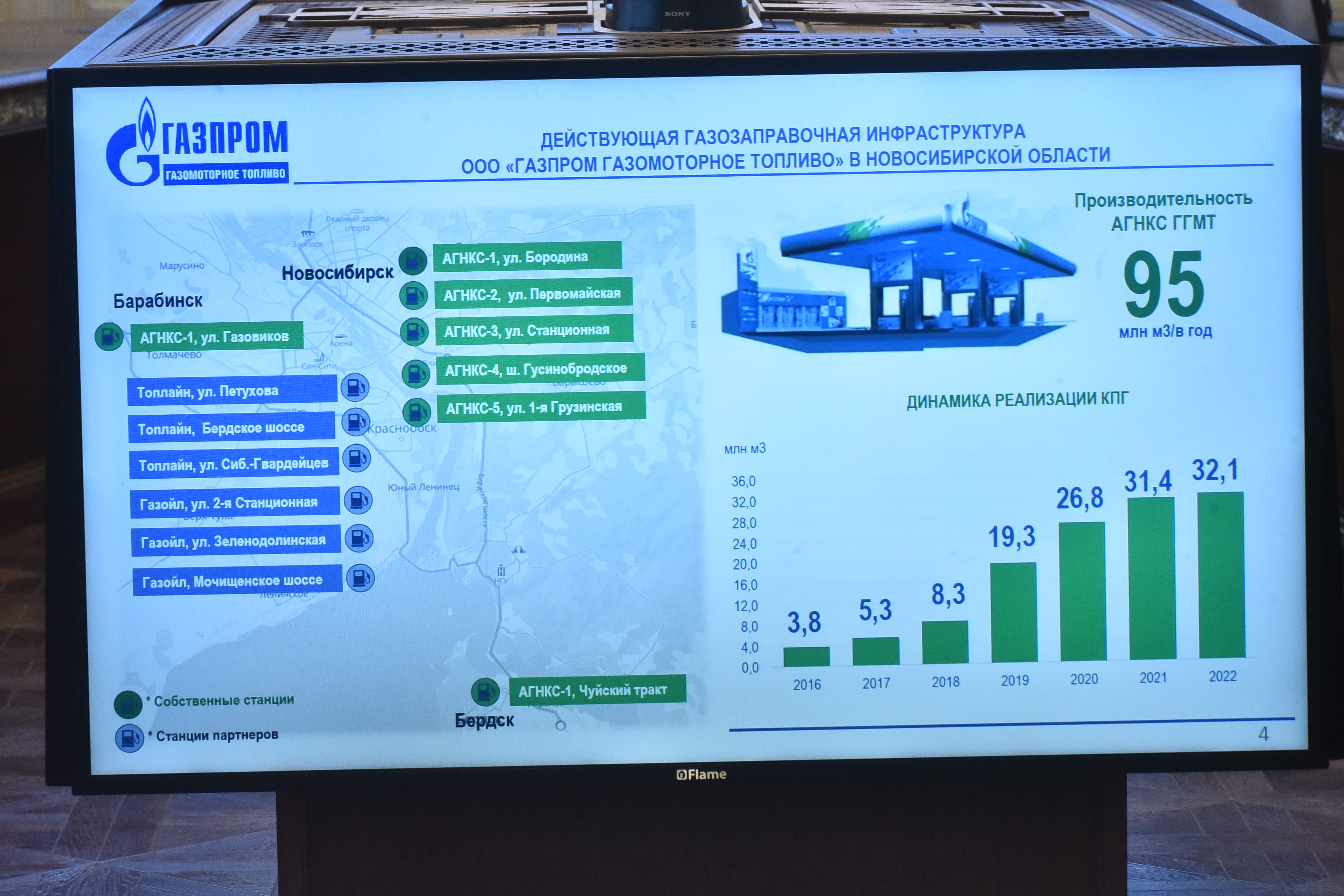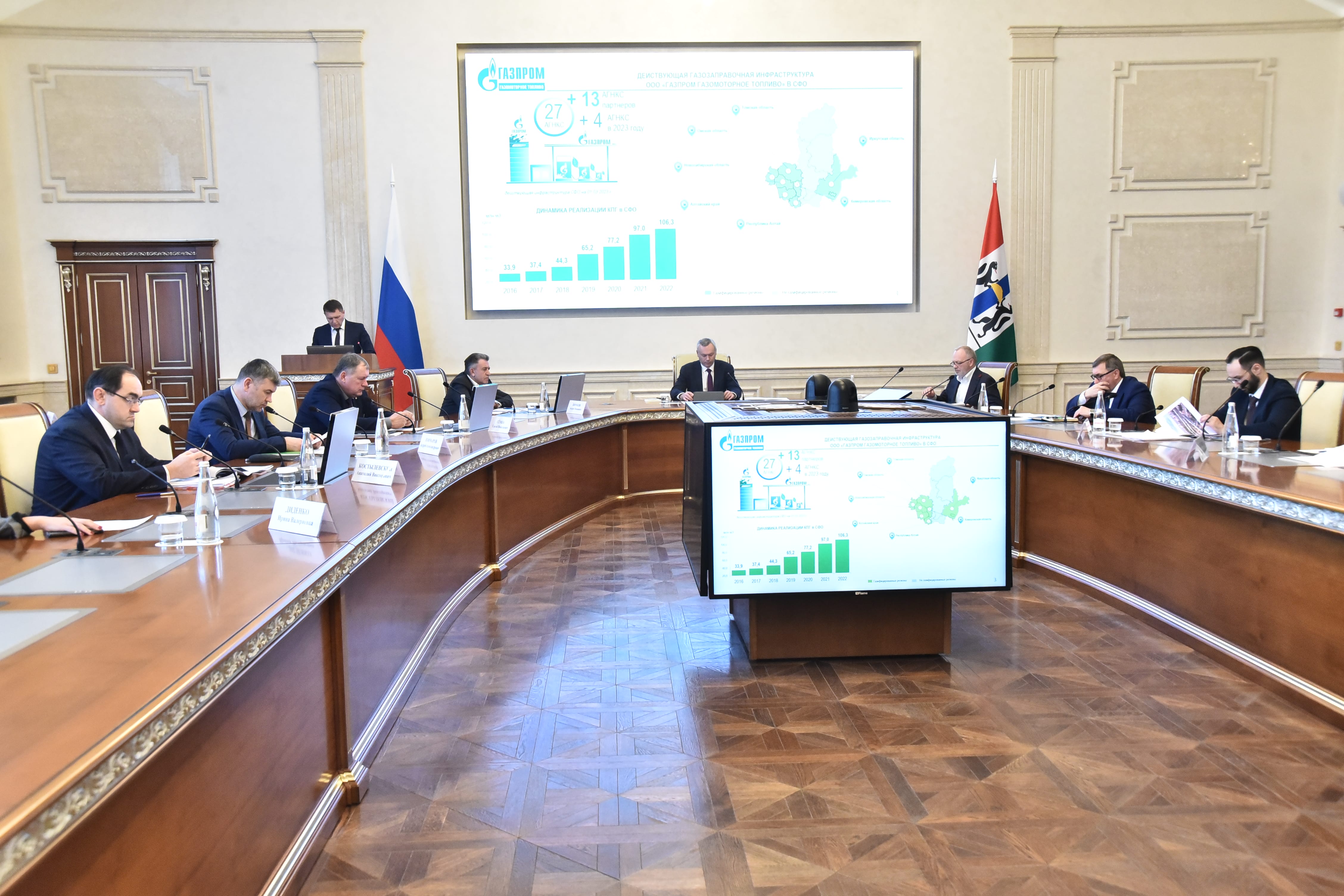 Губернатор Андрей Травников поддержал развитие в регионе сети автомобильных газонаполнительных компрессорных станций: «Перевод транспорта на газ для нас направление перспективное. С учетом нашего климата, даже более перспективное, чем электротранспорт. Предлагаю поддержать, при этом мы поддерживаем программу по строительству как минимум восьми станций, заявленных на период до конца 2026 года».