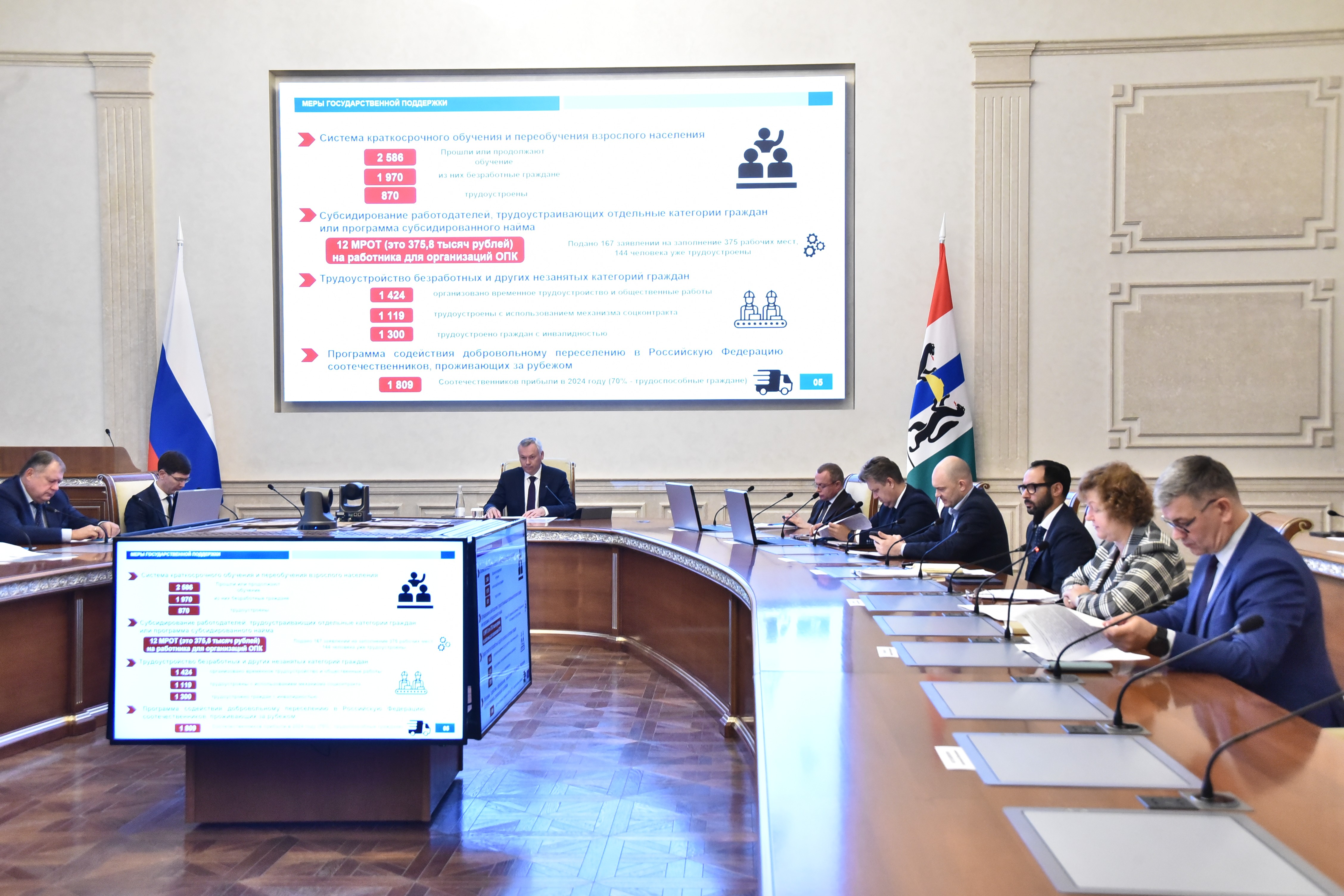 О ситуации с кадрами доложила министр труда и социального развития региона Елена Бахарева. По её словам, в Новосибирской области сохраняются исторически низкие показатели безработицы.