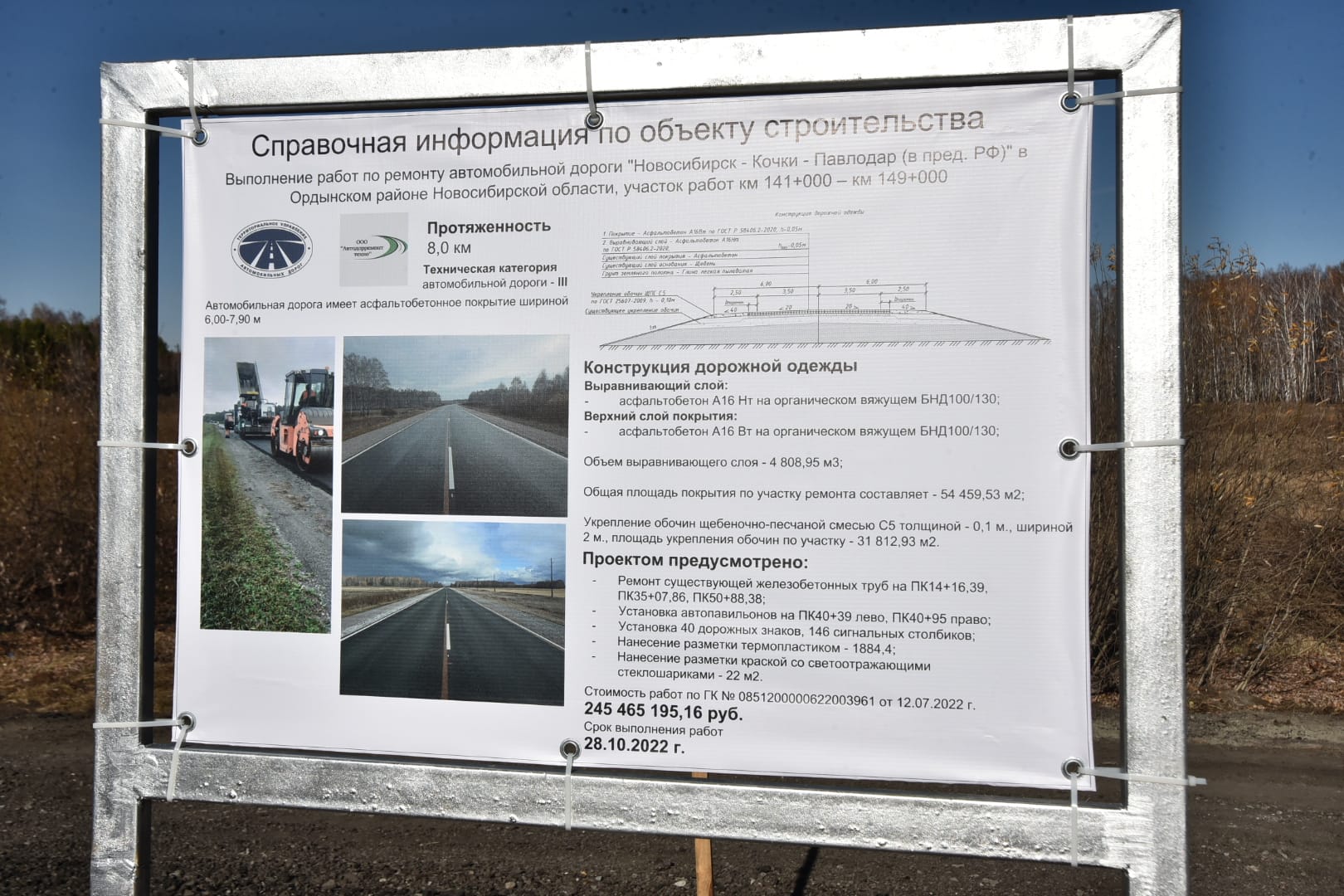 По информации ТУАД Новосибирской области, в работах по ремонту трассы «Новосибирск-Кочки-Павлодар» задействовано четыре подрядные организации. Дорожники везде фрезеруют старое покрытие, укладывают выравнивающий слой, полностью обновляют асфальтобетон, укрепляют обочины, устанавливают барьерные ограждения, новые дорожные знаки, наносят разметку. Работы выполняются в рамках нацпроекта «Безопасные качественные дороги». На 2023-2024 годы в планах ремонт еще 106 км дороги: в 2023 году планируется выполнить ремонт 67 км; в 2024 году запланирован ремонт 39 км.