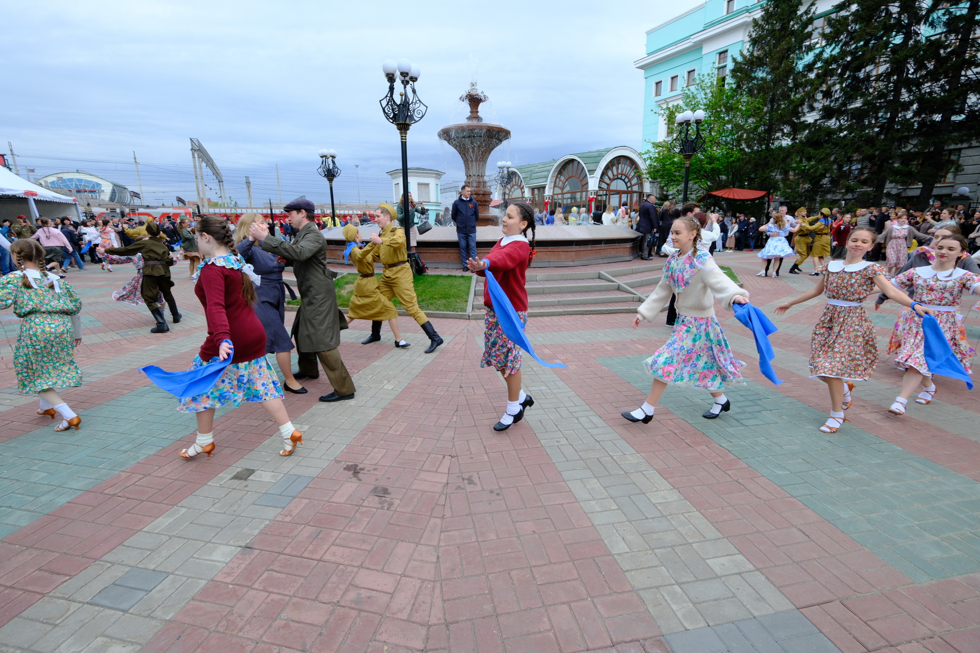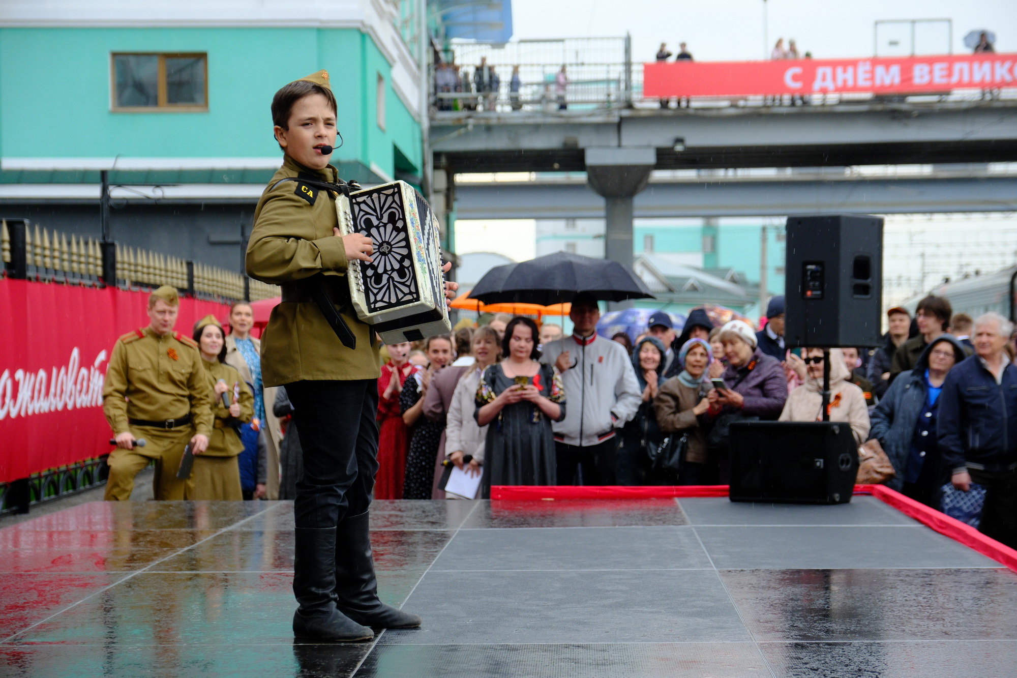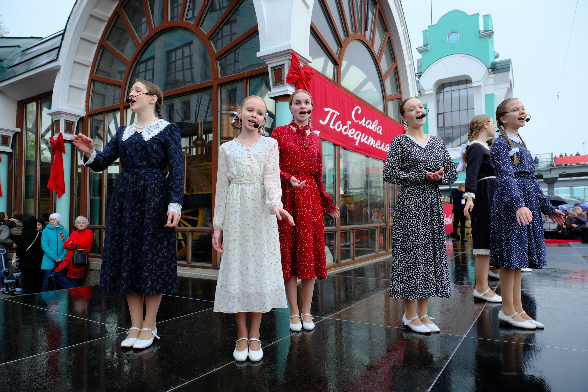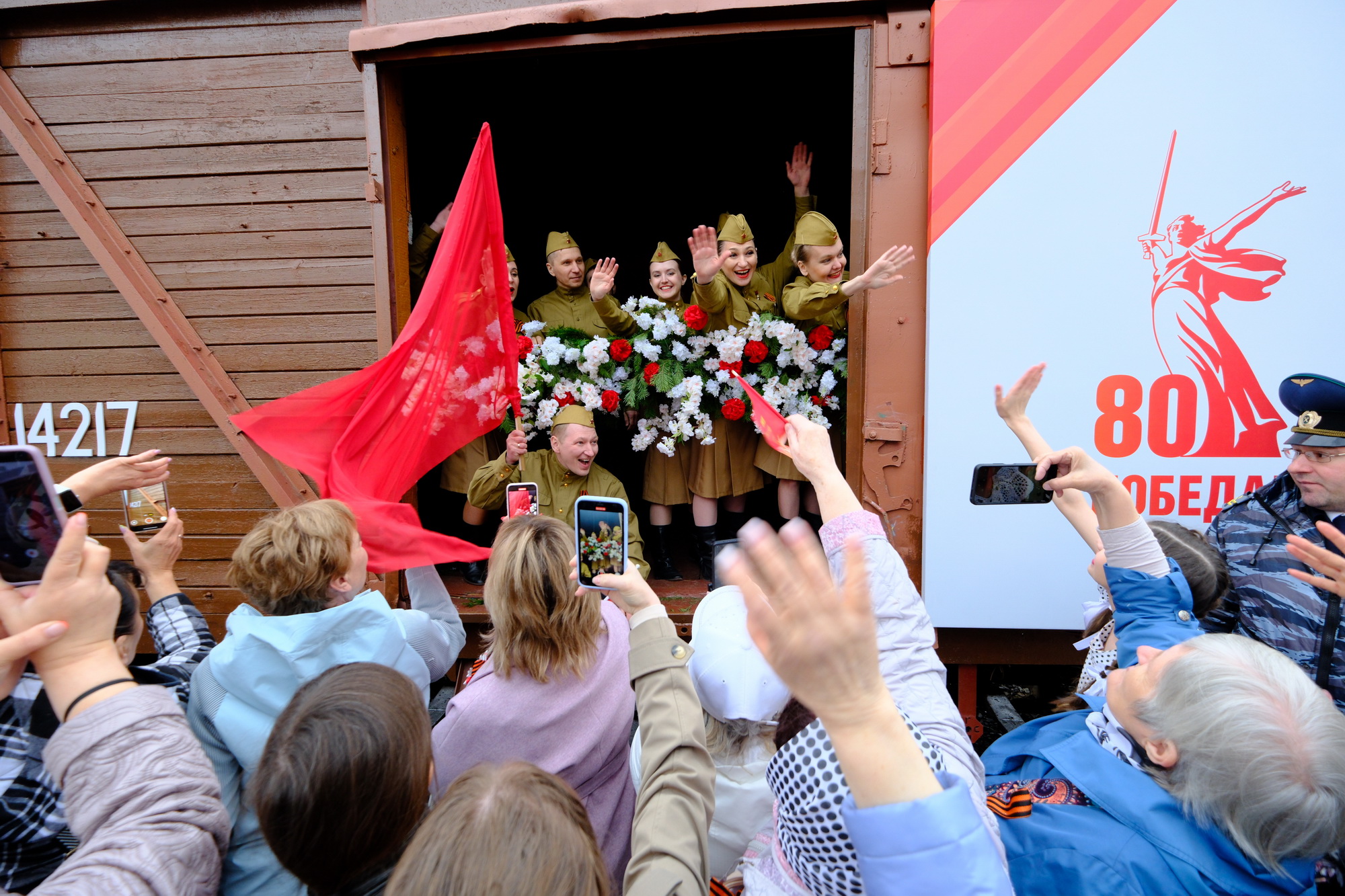 Перед прибытием эшелона рядом с пригородным вокзалом прошла тематическая акция «Вальс Победы». Также в этот день у вокзала работают интерактивные тематические площадки, фотозоны, мастер-классы. Волонтеры раздают копии выпуска газеты «Гудок» 1945 года.