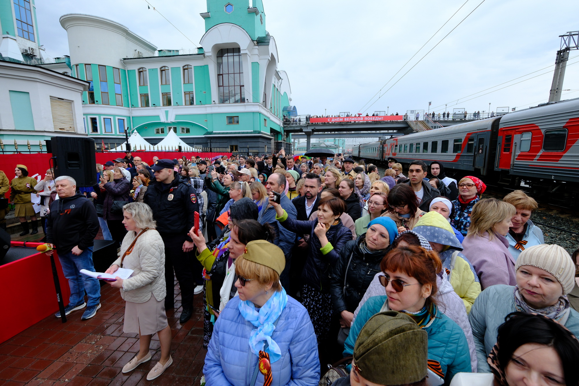 Новосибирцев приветствовали начальник Западно-Сибирской железной дороги Александр Грицай, главный федеральный инспектор по Новосибирской области Николай Буймов. В патриотической акции приняли участие Председатель Законодательного Собрания Новосибирской области Андрей Шимкив, сенаторы Российской Федерации Александр Карелин и Владимир Городецкий, мэр Новосибирска Максим Кудрявцев.