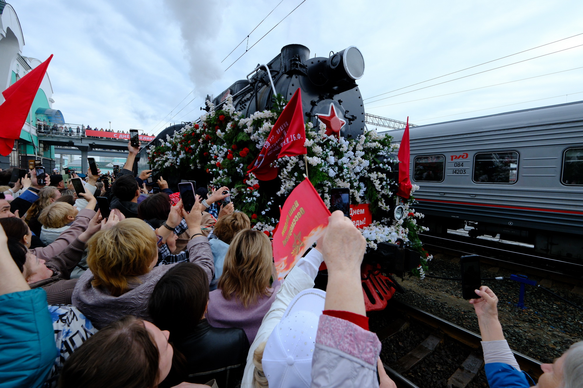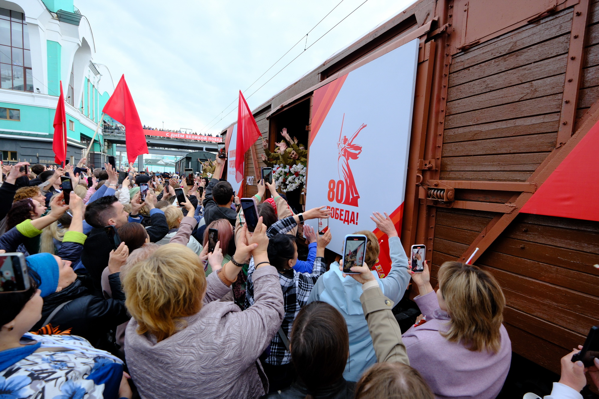 В рамках празднования 80-й годовщины Победы в Великой Отечественной войне на станцию Новосибирск-Главный Западно-Сибирской железной дороги прибыл ретропоезд «Эшелон Победы».