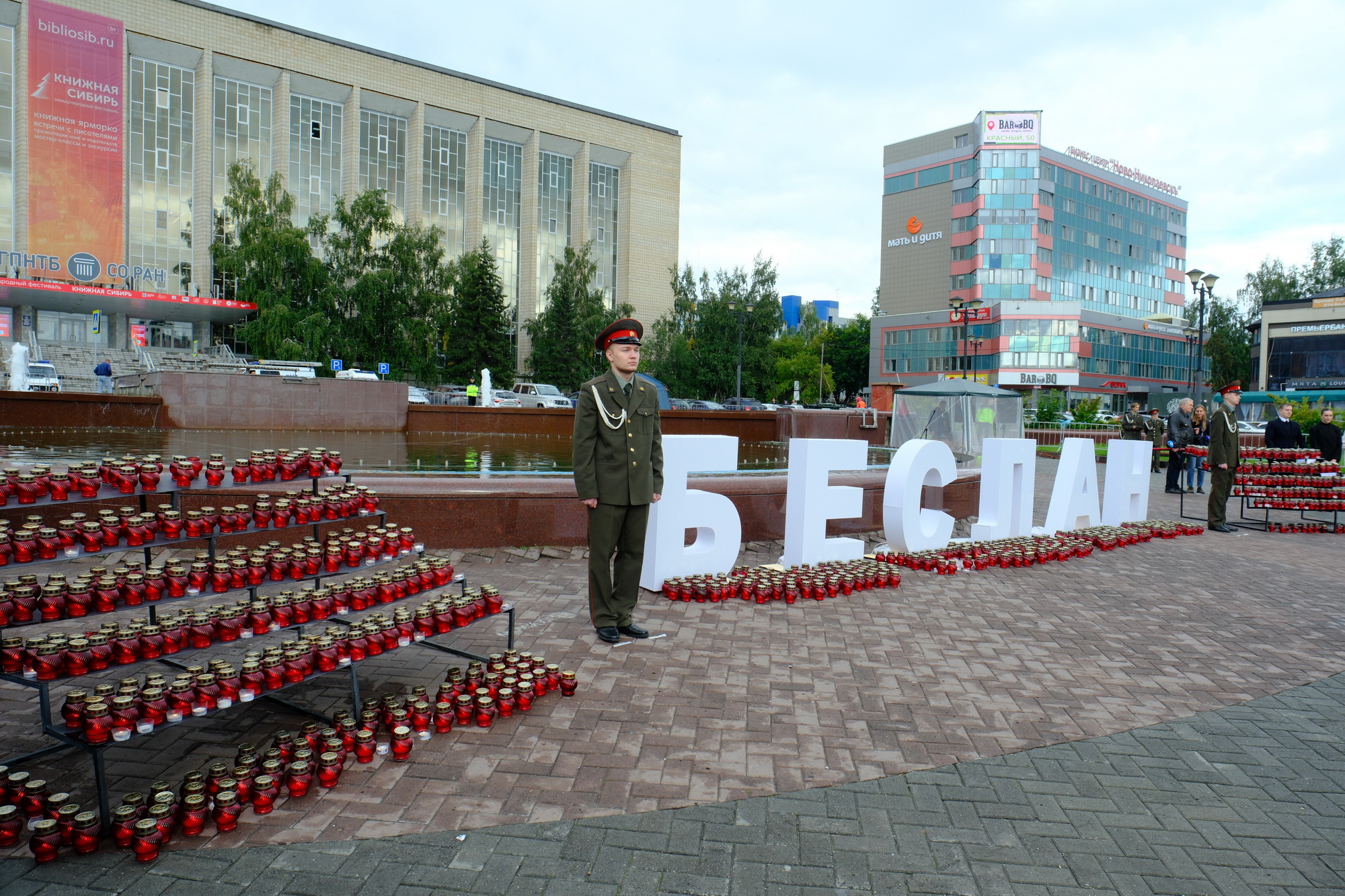 Акция, посвящённая памяти жертв трагедии 1–3 сентября 2004 года в школе №1 г. Беслана (Северная Осетия – Алания), проводится в Новосибирской области ежегодно. В памятном мероприятии приняли участие более тысячи человек – школьники, студенты, курсанты, ветераны воинской службы, депутаты Законодательного Собрания Новосибирской области, представители органов государственной власти и местного самоуправления, правоохранительных органов, члены делегации Республики Северная Осетия – Алания. Собравшиеся на площади им. Пименова зажгли лампады, свечи, почтили память погибших при теракте минутой молчания.