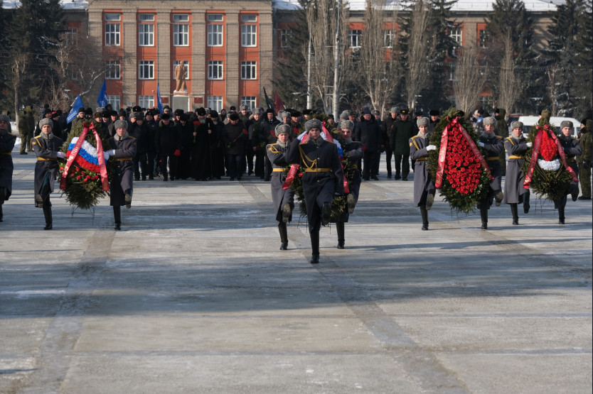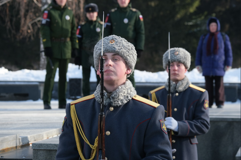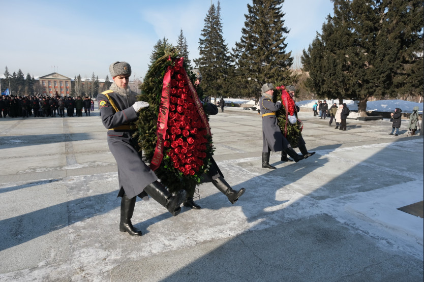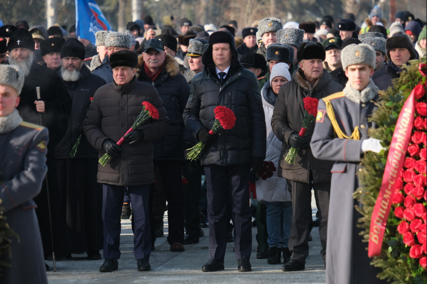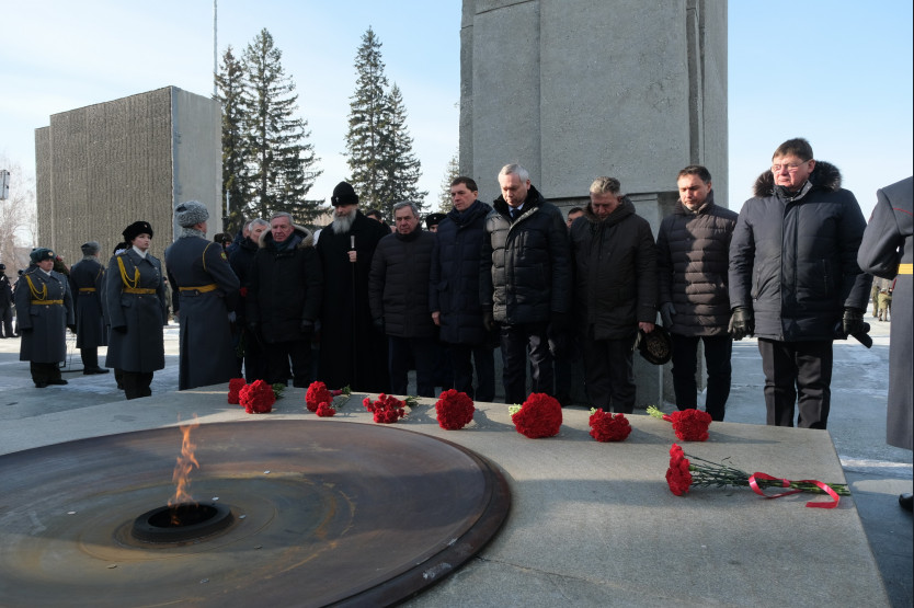 Губернатор Андрей Травников возложил цветы на Монументе Славы в День защитника Отечества