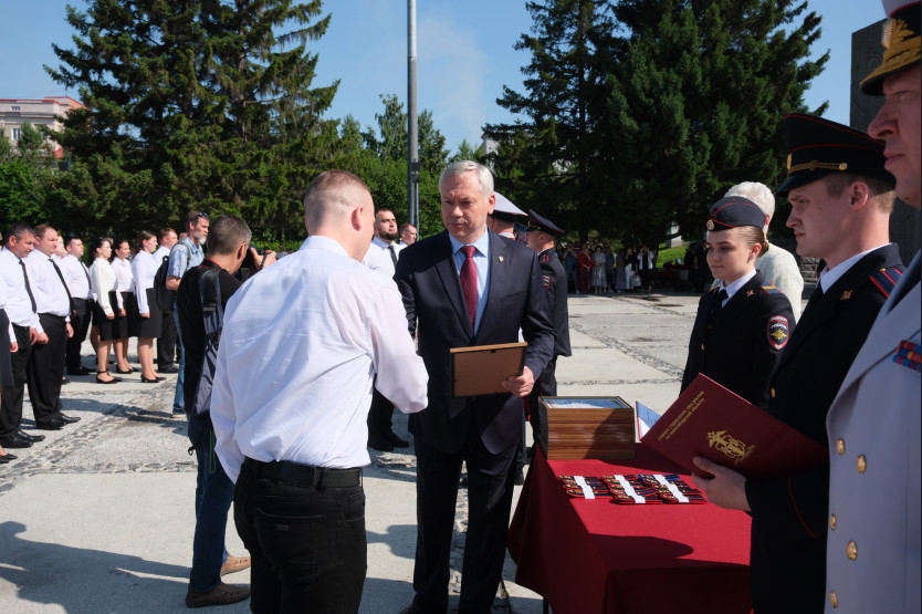 Губернатор Андрей Травников принял участие в церемонии, поздравил собравшихся с Днём России, пожелал молодым сотрудникам успехов на службе. «Поздравляю вас с государственным праздником - с Днём России, а также поздравляю с присвоением вам первых специальных, офицерских званий. Традиции вручать первые офицерские погоны в день государственного праздника уже пять лет, но сегодняшний день особенный - вы получили погоны лейтенантов в День России, в год восьмидесятилетия Великой Победы, год объявленный Президентом нашей страны Годом защитника Отечества. Хочется, чтобы для вас этот день был не только торжественным, но и очень важным, на всю нашу жизнь.