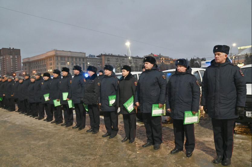 Накануне Дня сотрудника органов внутренних дел Российской Федерации ключи от 54 новых автомобилей вручены полицейским на площади Ленина в Новосибирске.