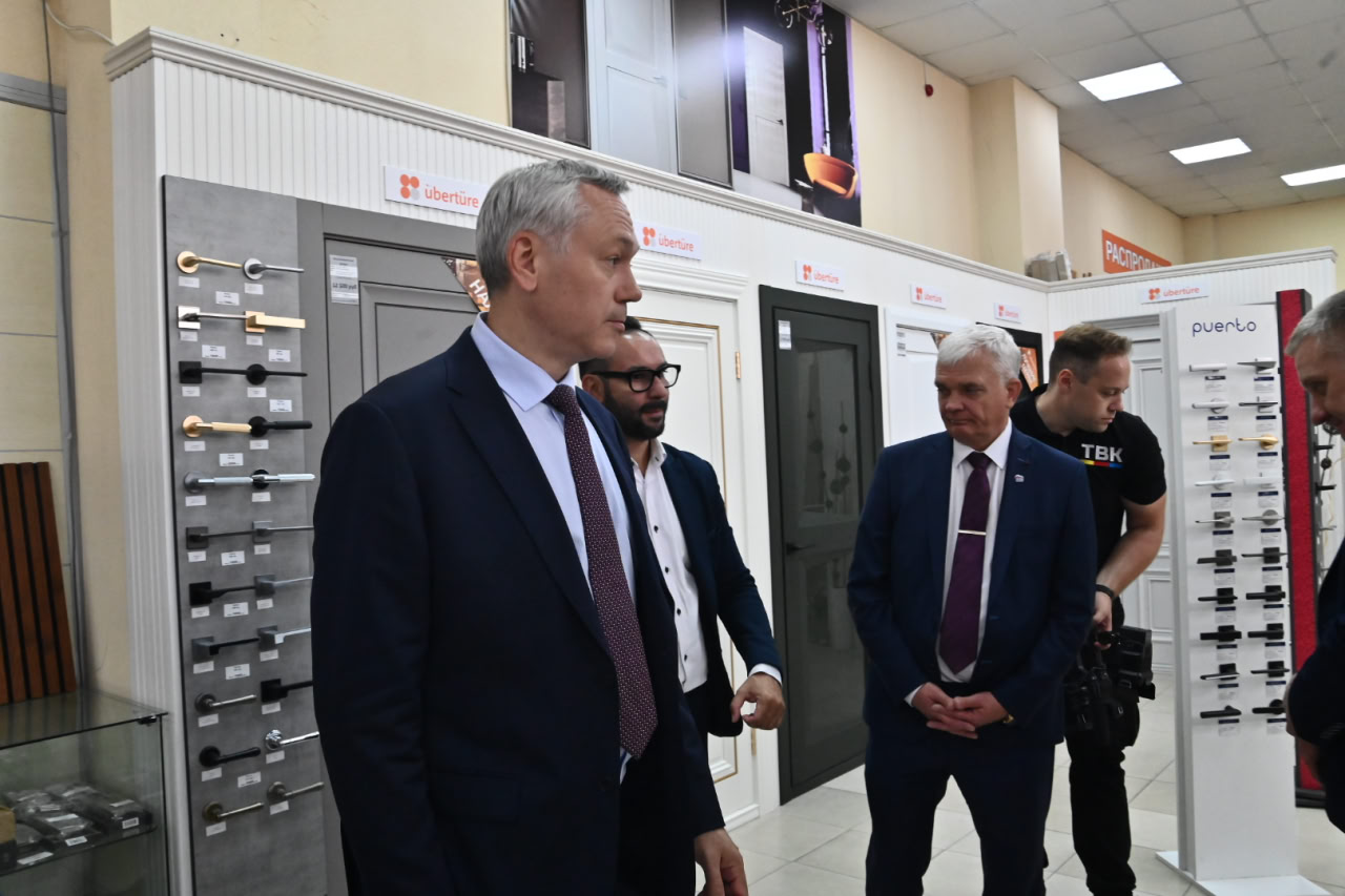 Глава региона Андрей Травников и Председатель Законодательного Собрания Новосибирской области Андрей Шимкив во время рабочей поездки в Бердск посетили предприятие «Тепловые машины» (завод котельного оборудования), «Убертюре» (декоративные стеновые панели) и Бердский электромеханический завод.