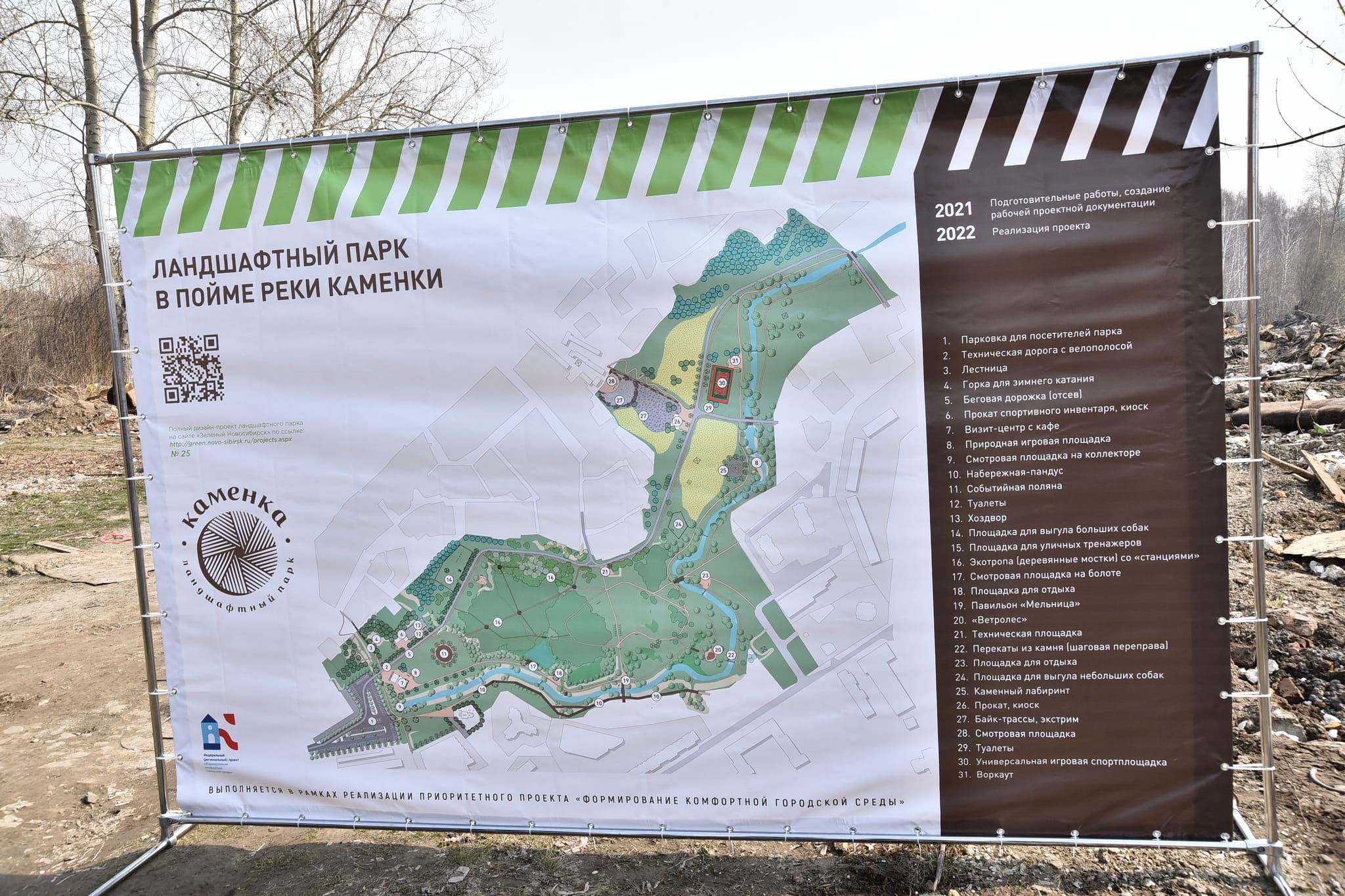 Территория будущего парка расположена в границах улиц Адриена Лежена, Поселковая, Комбинатская, Трикотажстроя пер., Есенина, Трактовая, Волочаевская в Дзержинском районе Новосибирска. В 2018 году за благоустройство этой территории проголосовало более 16,5 тысяч человек. Эко-парк в пойме Каменки стал четвёртым в рейтинговом голосовании среди городских проектов (на первом месте был Монумент Славы в Ленинском районе Новосибирска – почти 33,5 тысячи голосов, на втором – Затулинский дисперсный парк в Кировском районе – 24,3 тыс. голосов и на третьем – ПКиО «Заельцовский» в Заельцовском районе – 19,6 тысяч голосов).