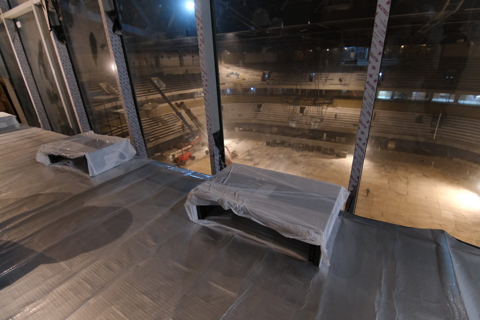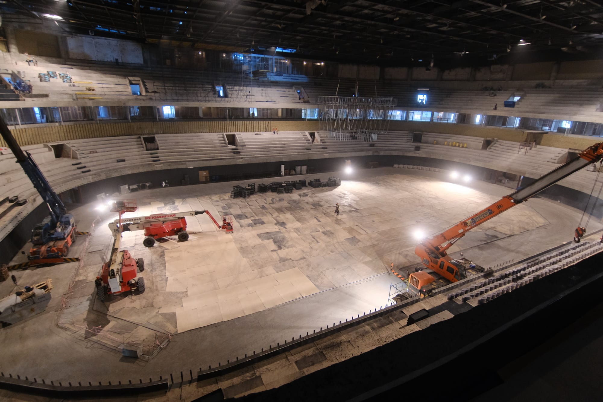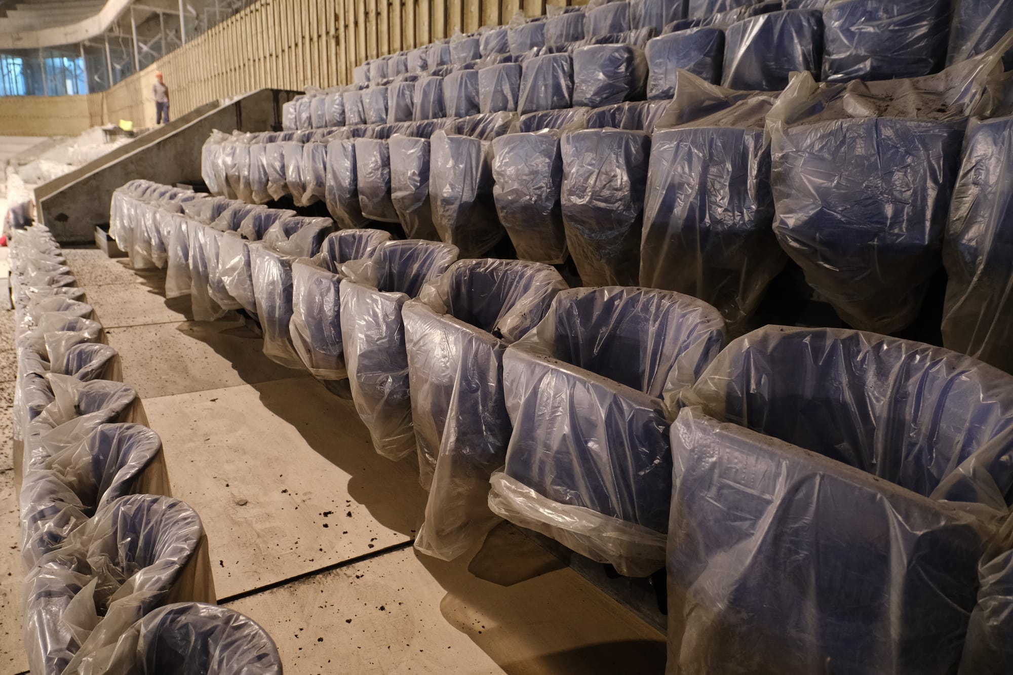 На объект уже доставлены современные амортизирующие борта, предусмотренные проектом. Благодаря им в новом дворце будут созданы условия для проведения как спортивных мероприятий, так и других крупных праздников. Арена способна трансформироваться за несколько часов под разные форматы. После преобразования зал будет способен вмещать более 12,5 тысяч зрителей. Монтаж бортов начнется после завершения всех отделочных работ.