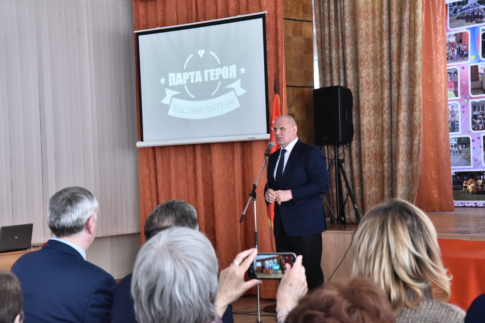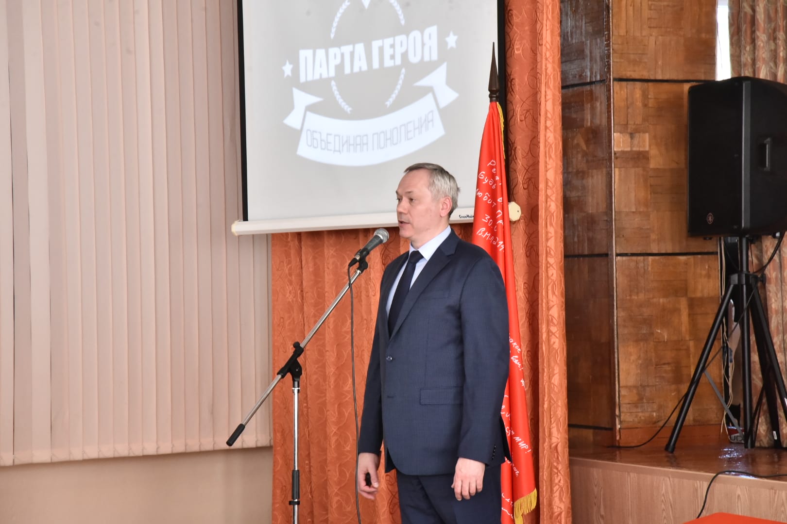 Также глава региона принял участие в торжественном открытии «Парты Героя» в Искитимской школе №11. Проект посвящён увековечиванию памяти участников Великой Отечественной войны Леонида Яковлевича Одегова и Антона Алексеевича Страхова. Губернатор поблагодарил школу за то, что она присоединилась к проекту и напомнил школьникам, как важно хранить память о Героях, земляках, которые боролись за наши свободу и будущее.