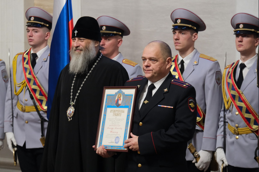 Высокие награды героям-полицейским сегодня вручили Митрополит Новосибирский и Бердский Никодим, Председатель Законодательного Собрания региона Андрей Шимкив.