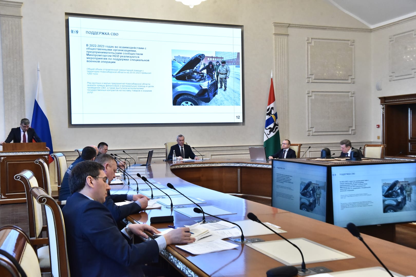В 2022-2023 годах Минпромторгом НСО во взаимодействии с общественными организациями, предпринимательским сообществом реализуются мероприятия по поддержке специальной военной операции. Общий объем отправленной гуманитарной помощи с территории Новосибирской области на 20 марта 2023 г. превысил 1260 тонн. Ряд крупных и малых предприятий Новосибирской области оказали прямую финансовую и материальную помощь в целях проведения СВО, а также выступили исполнителями государственных контрактов на поставку товаров и оказание услуг.