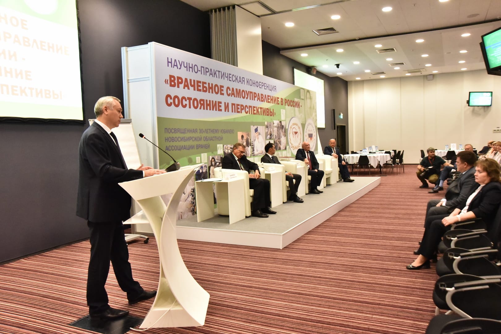 Губернатор Андрей Травников принял участие в открытии научно-практической конференции «Врачебное самоуправление в России - состояние и перспективы», посвященной 30-летию со дня основания Новосибирской областной ассоциации врачей.