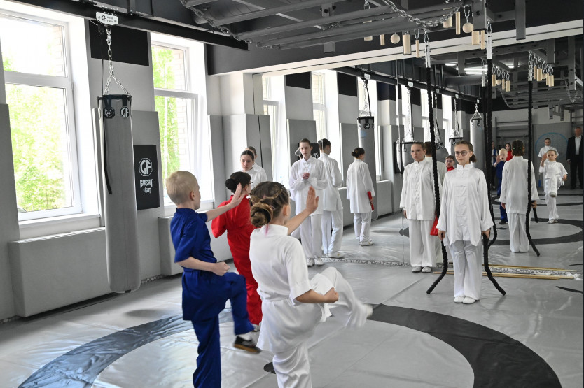 «Удалось выделить два земельных необъединённых участка. И поэтому здесь такой интересный подход к созданию спортивного блока. В основном здании школы разместили актовый зал, полноценный спортивный игровой зал, и даже второй гимнастический зал. И мало того — построили отдельное здание спортивного ядра, где также два зала, тренерские раздевалки — фактически инфраструктура для ещё одной спортивной школы. Мы посмотрим, как это будет использоваться в системе образования. Возможно, будем использовать этот опыт в дальнейшем», – отметил Андрей Травников.