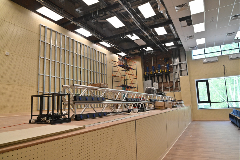В новой школе оборудуют студию звукозаписи и телестудию, мастерские, кабинеты домоводства. Отдельный спортивный блок — для занятий мини-футболом и боксом. На территории школы — стадион с беговыми дорожками, а также площадка для спортивных игр.