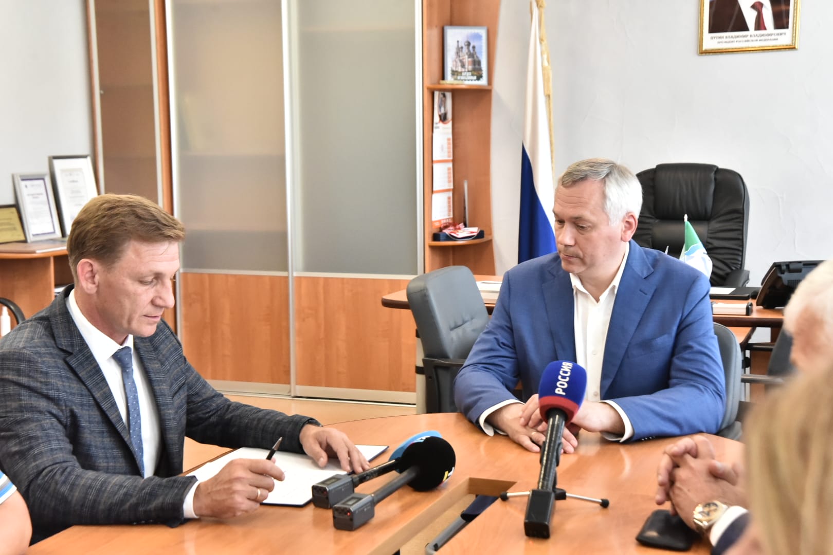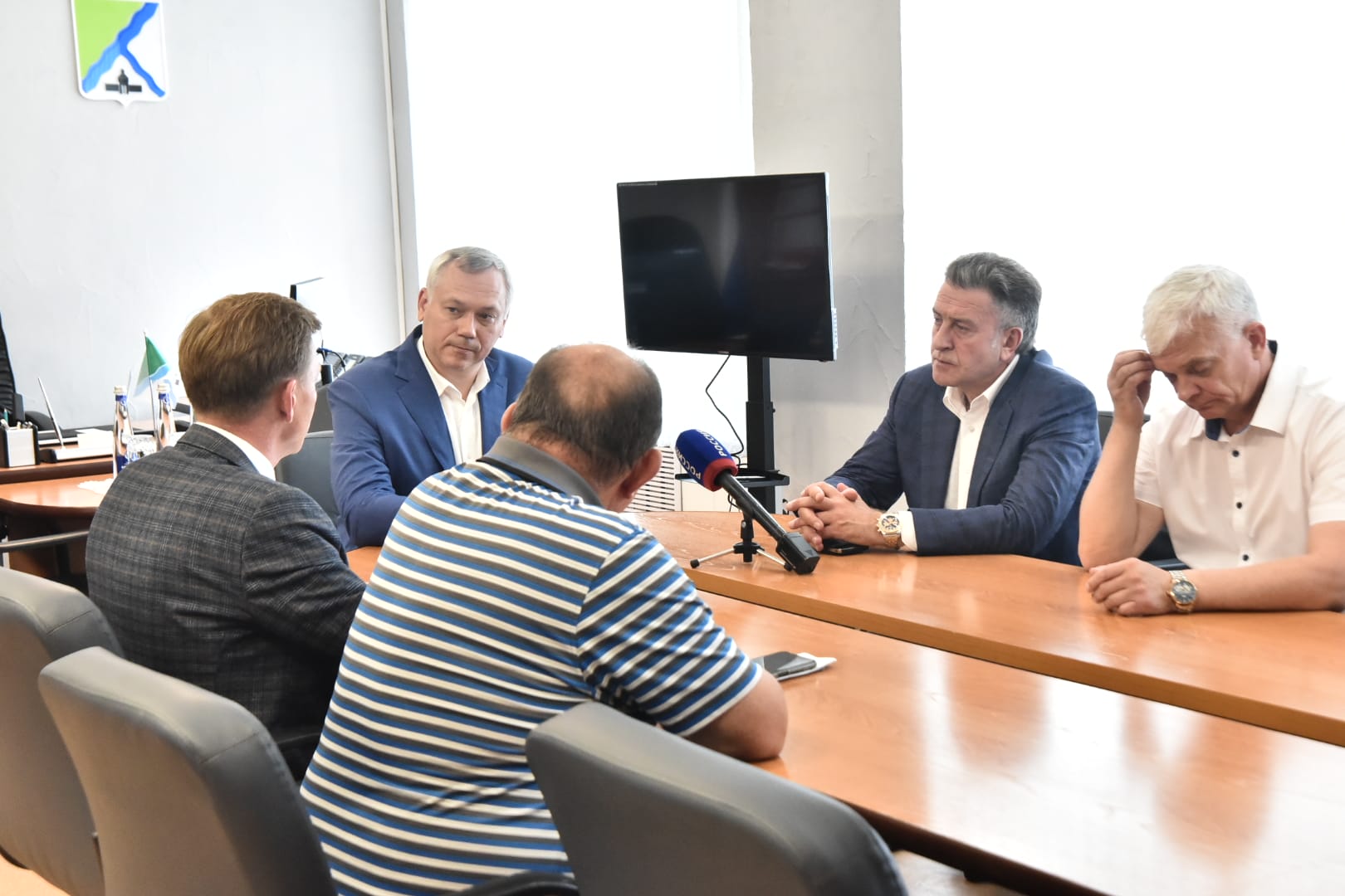 Губернатор Андрей Травников провел рабочую встречу с главой Бердска Романом Бурдиным. Участниками встречи стали Председатель Законодательного Собрания области Андрей Шимкив, депутаты региона.