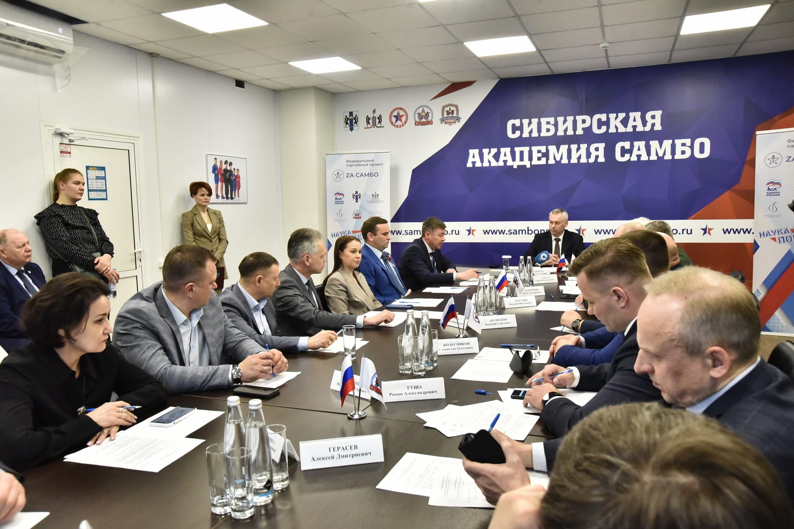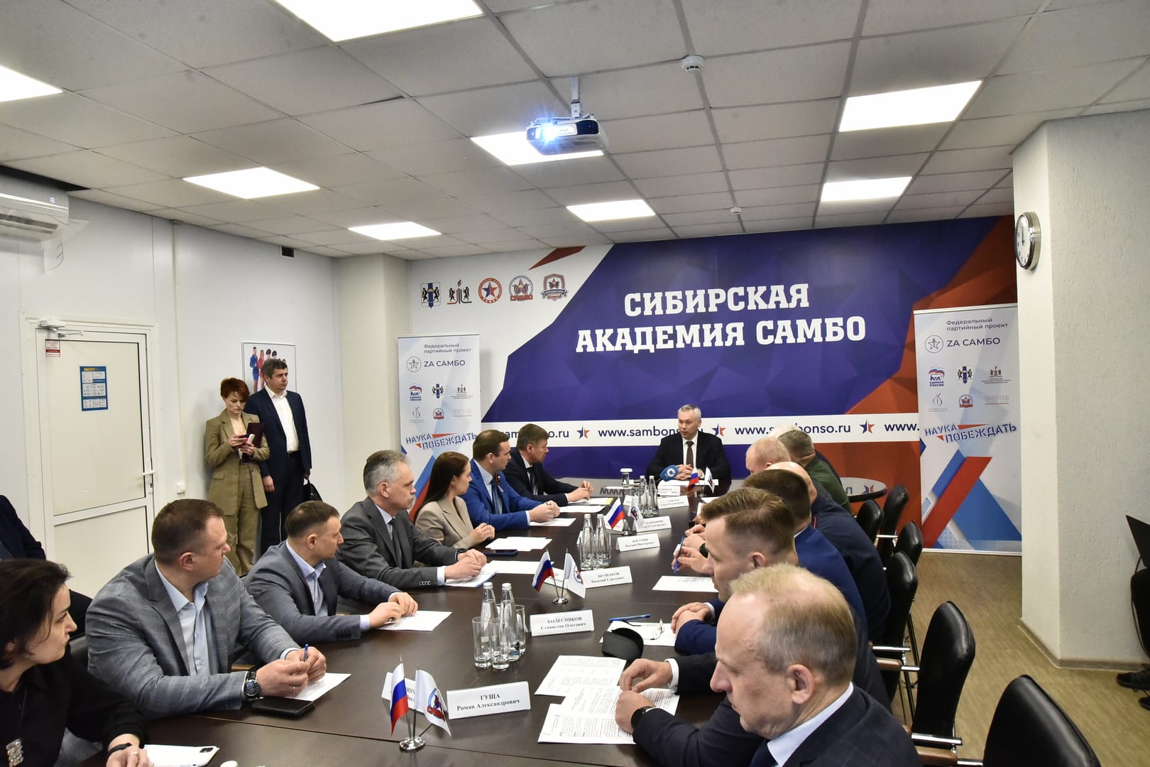 Губернатор Андрей Травников провел заседание общественного совета федерального проекта партии «Единая Россия» «Zа самбо» в Новосибирской области. В работе совета принял участие президент Всероссийской федерации самбо Сергей Елисеев.