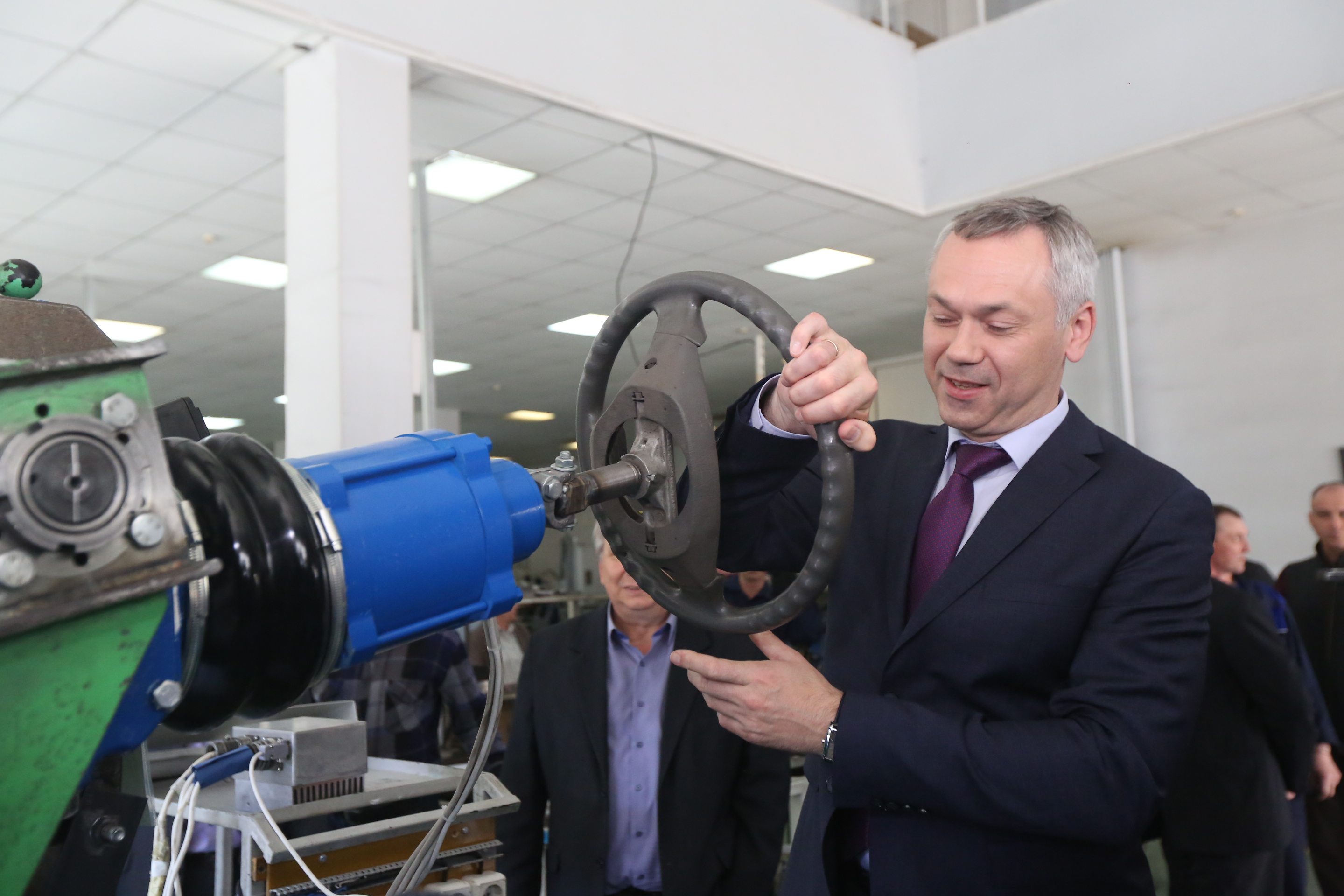 Андрею Травникову продемонстрировали индукционное оборудование, включая инновационные образцы продукции. Была показана в действии уникальная разработка – электромеханический усилитель руля для троллейбусов и электробусов. Установка не имеет аналогов в мире. Уникальность новосибирской разработки в том, что она позволяет снизить усилия, прикладываемые к рулевому колесу в 2-5 раз. Изобретение уже используется на одном из маршрутов новосибирских троллейбусов.