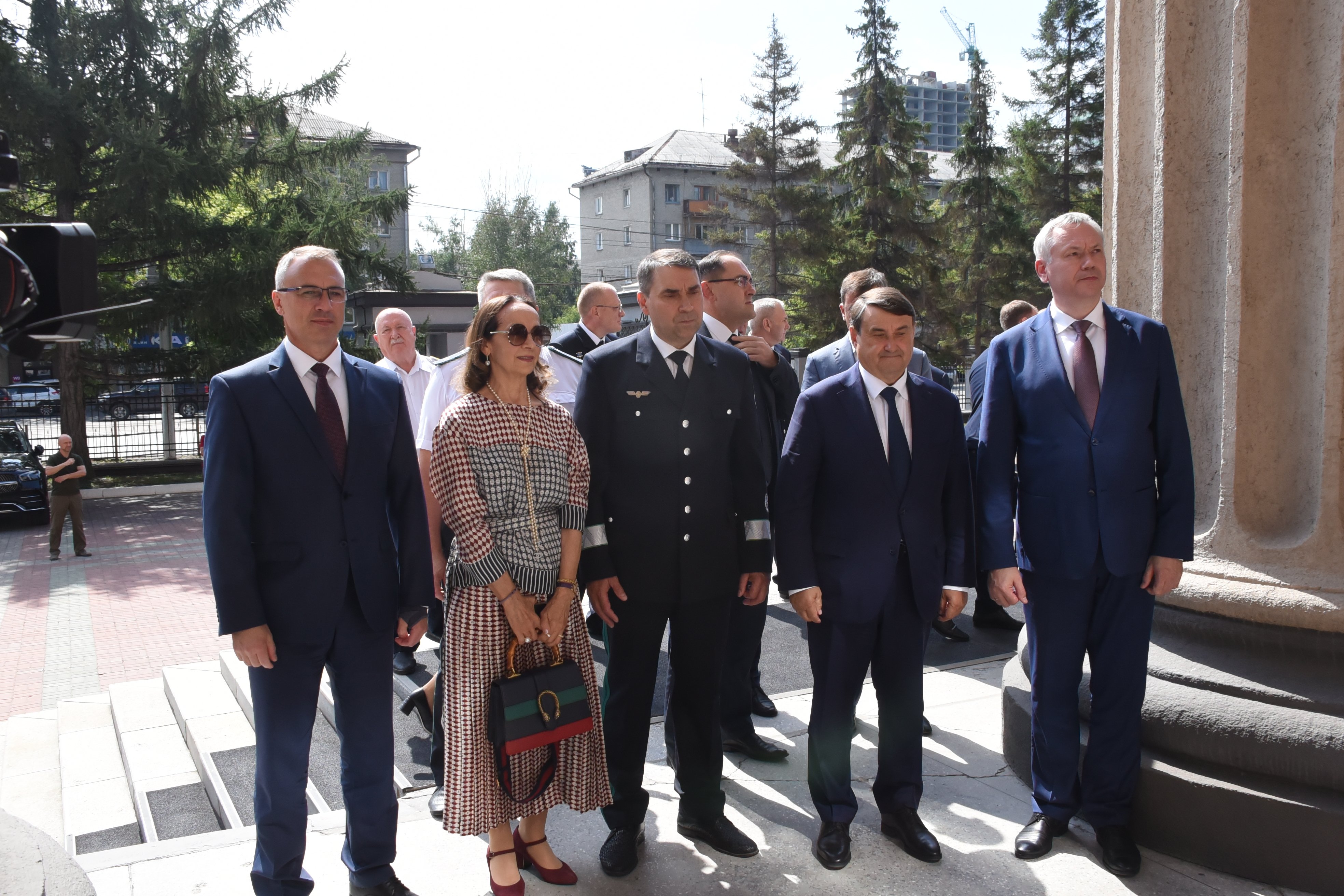 Советник Президента РФ, специальный представитель Президента РФ по международному сотрудничеству в сфере транспорта Игорь Левитин, Губернатор Андрей Травников приняли участие в торжественном открытии памятных досок министрам путей сообщения Российской Федерации Николаю Аксёненко и Владимиру Старостенко.
