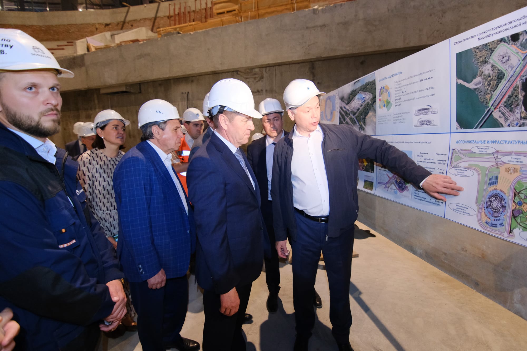 Губернатор Андрей Травников, председатель Комитета Совета Федерации по федеративному устройству, региональной политике, местному самоуправлению и делам Севера Андрей Шевченко, заместитель председателя комитета совета федерации по науке, образованию и культуре Виктор Кресс, сенатор Российской Федерации Владимир Городецкий, члены региональногоправительства посетили площадку строящегося объекта «Многофункциональная ледовая арена», в том числе объектов обеспечения транспортной доступности.