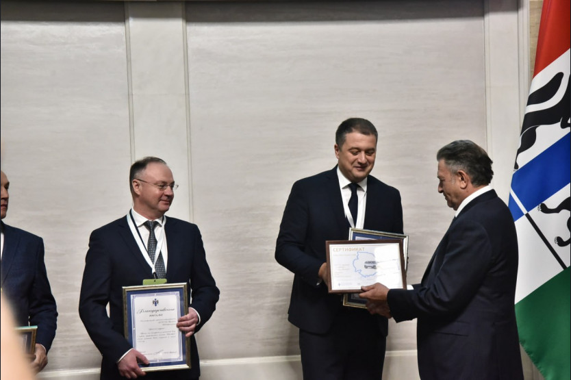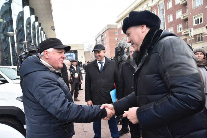 Губернатор Андрей Травников и Председатель Законодательного Собрания Новосибирской области Андрей Шимкив вручили аграриям – победителям трудового соревнования – сертификаты на легковые автомобили и ключи от машин.