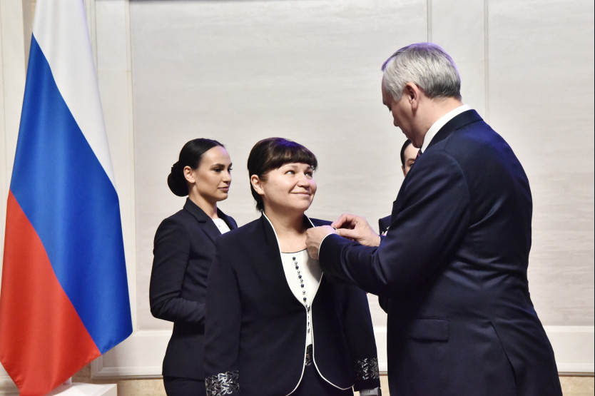Врачам, учителям, железнодорожникам, ветеринарам и лесникам, авиастроителям и работникам транспорта сегодня – в преддверии Дня народного единства – вручили высокие государственные и региональные награды. Представители самых разных сфер получили почётные звания, Орден Дружбы, медали ордена «За заслуги перед Отечеством», медаль Луки Крымского, Благодарности Президента России и Почётные грамоты Новосибирской области.