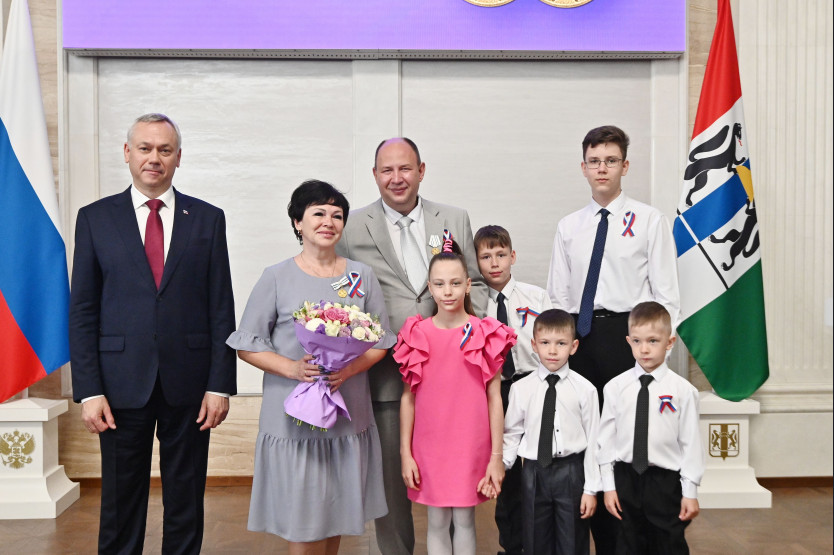 Медалью ордена «Родительская Слава» награждены родители пятерых детей из Октябрьского района Новосибирска Андрей и Татьяна Зуевы.