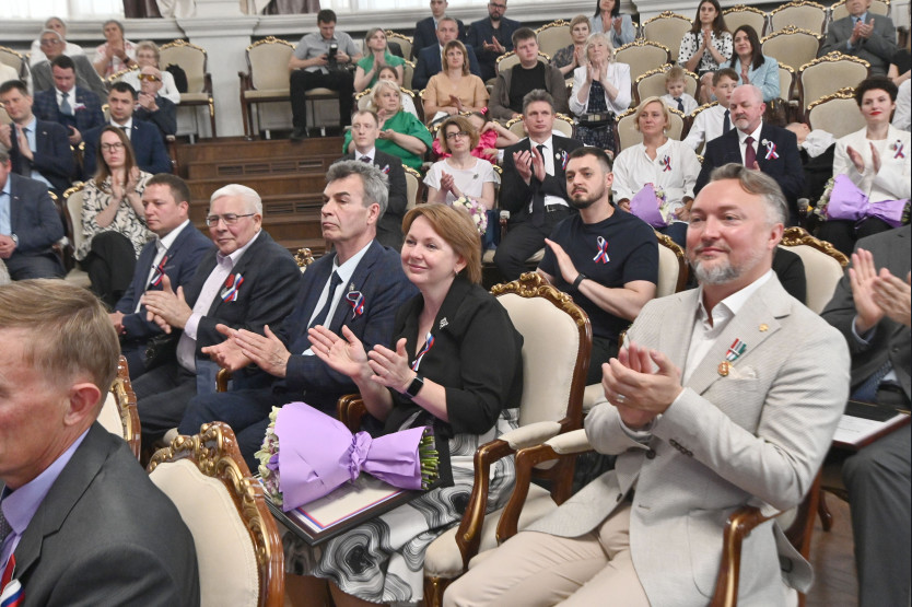 «Хочу от имени всех депутатов Законодательного Собрания поздравить вас со столь достойными наградами – федеральными и областными. Сегодня в этом зале люди разных поколений, разных профессий, наши воины, представители оборонной промышленности. Эти награды – награды вас, и ваших коллективов. Поэтому передайте всем людям, с которыми вы работаете, своим родственникам, что награды это коллективные. Никогда человек один не заработает – это коллектив, это люди, которые вокруг вас. Я поздравляю вас с вашими достойными наградами. Желаю вам счастья, успехов! С наступающим Днём России! И, конечно, всем нам победы!», – отметил Андрей Шимкив.