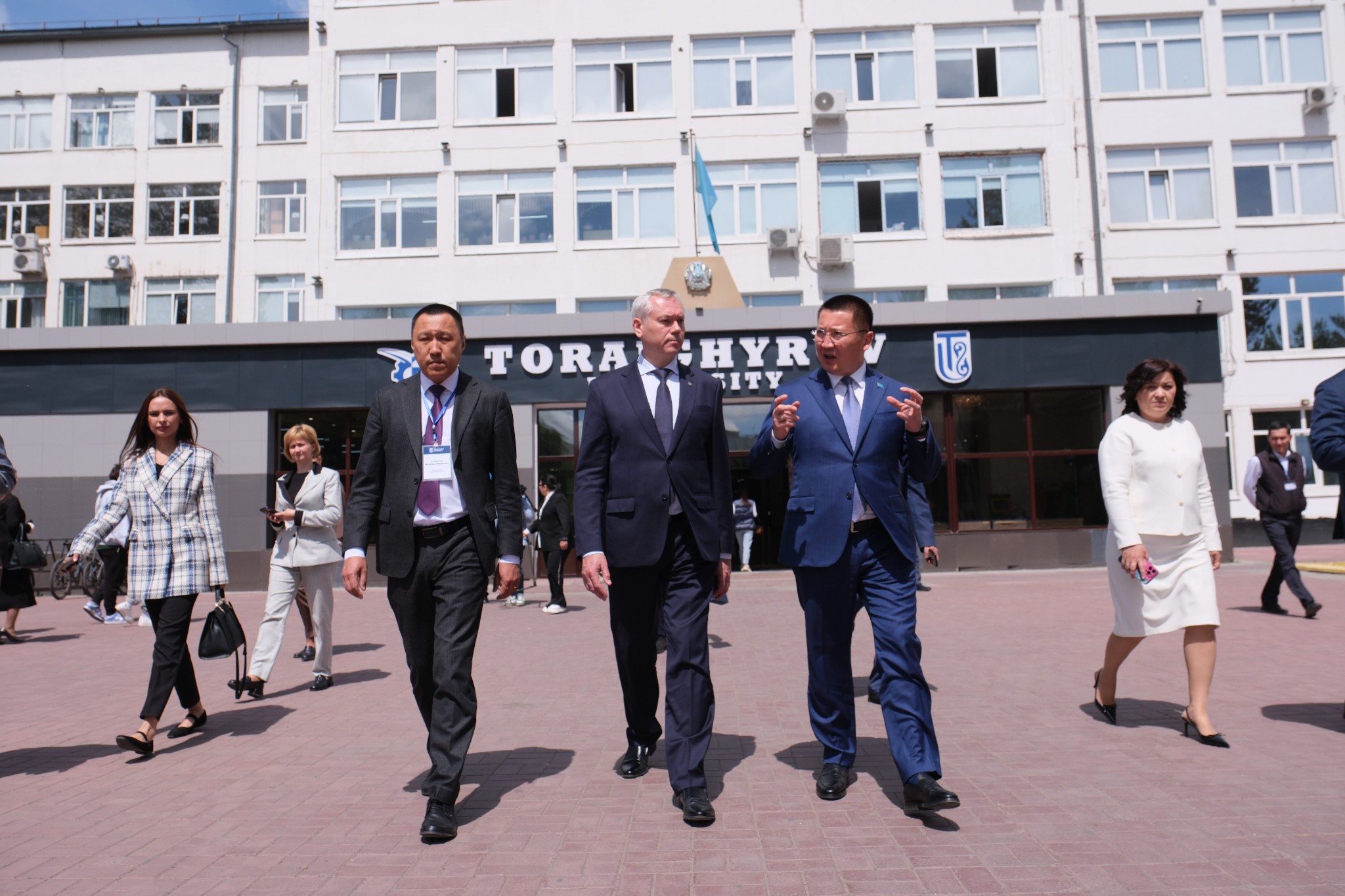 Губернатор Новосибирской области Андрей Травников и Аким Павлодарской области Асаин Байханов посетили некоммерческое акционерное общество «Торайгыров университет».
