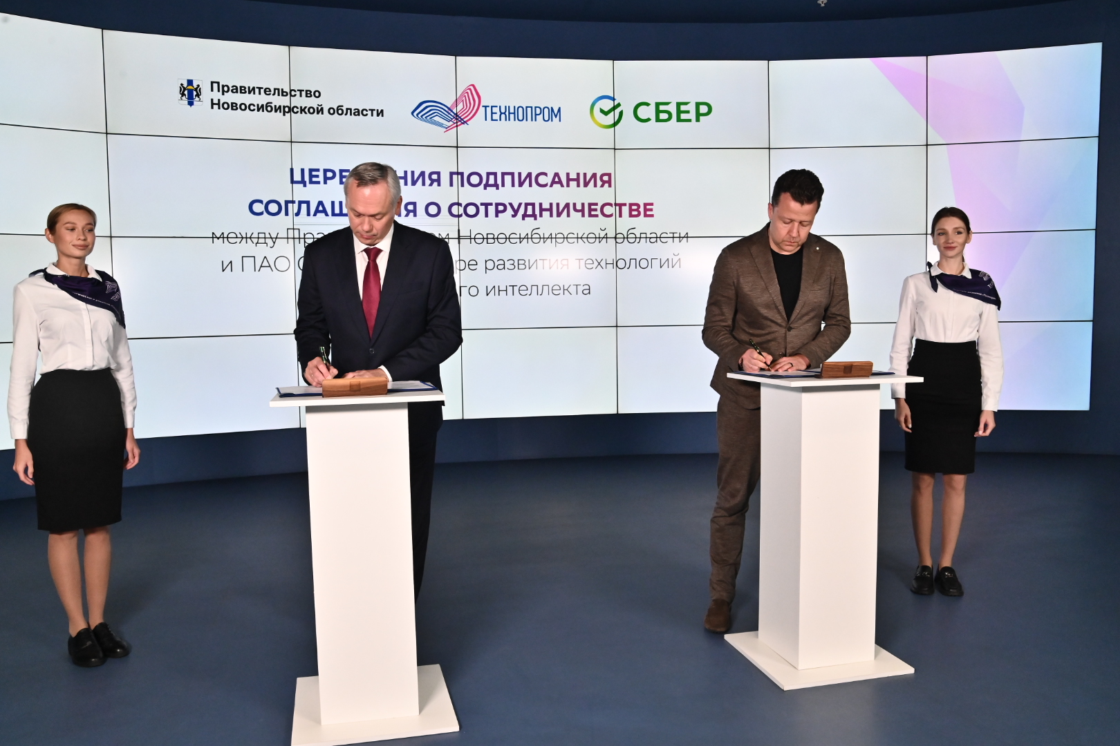Документ подписали Губернатор Новосибирской области Андрей Травников и старший вице-президент, руководитель блока «Технологическое развитие» Сбербанка Андрей Белевцев.