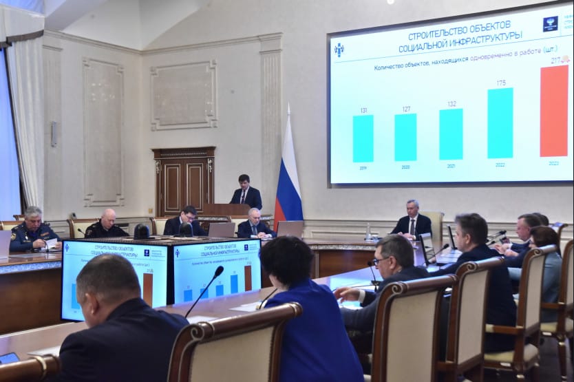 В небывалых объёмах идёт строительство объектов социальной инфраструктуры. Сейчас одновременно в работе находится 217 объектов, в том числе 39 социальных жилых домов. Это беспрецедентное количество за всё время. За последние 5 лет количество объектов выросло на 66%, а объём финансирования – на 81%. В этом году введён в эксплуатацию 31 объект социальной инфраструктуры, в том числе: 28 объектов здравоохранения (18 ФАПов, 3 поликлиники, 7 врачебных амбулаторий); 2 школы; 1 стадион. Кроме того, введено в эксплуатацию 18 домов (164 квартиры) специализированного жилищного фонда для детей-сирот и служебного жилья.