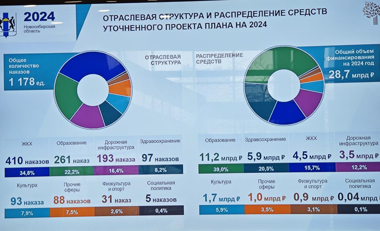 Отраслевая структура и распределение средств выглядит следующим образом, сообщил Лев Решетников: самое большое количество наказов в сферах ЖКХ, образования, дорожной инфраструктуры. С точки зрения финансирования лидерство у сфер образования (11,2 млрд рублей), здравоохранения (5,9 млрд) и ЖКХ (4,5 млрд).